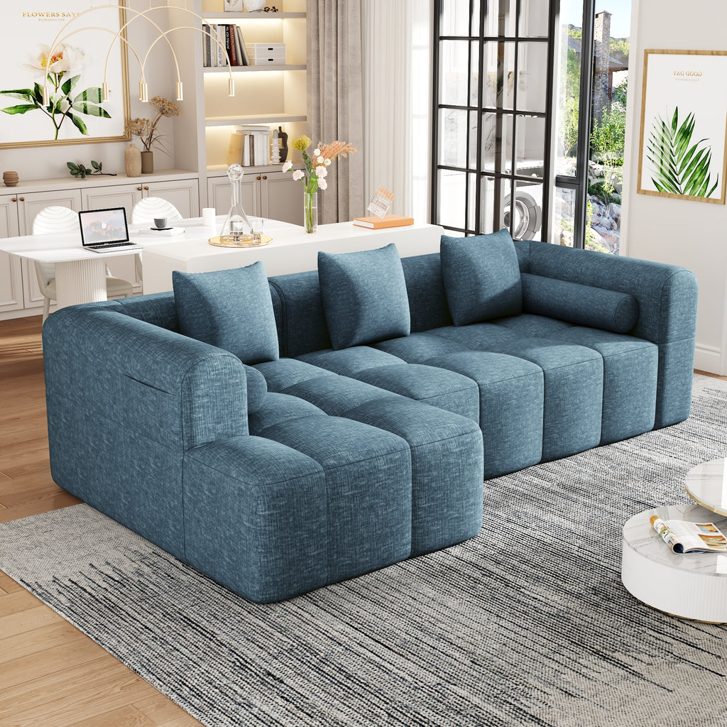 - Full High-Density Foam Construction for Ultimate Comfort – The entire sofa is crafted with high-density compressed foam, offering exceptional support and long-lasting resilience. Unlike traditional spring-based sofas, this full-foam design provides a plush, even seating experience while maintaining its shape over time.
