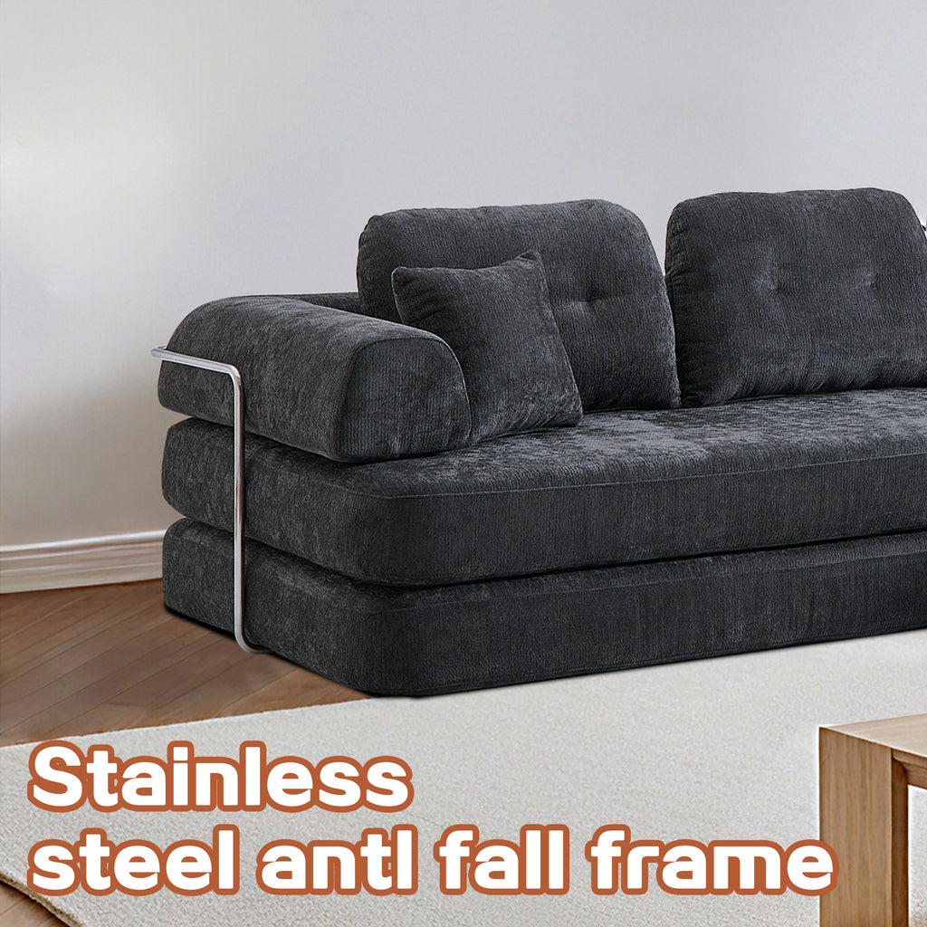 - Say goodbye to the rigid frames of traditional sofas. The unique boneless design creates a casual,S-curve silhouette. Upholstered in durable and plush chenille fabric, it feels soft and skin-friendly, exuding a premium aesthetic.