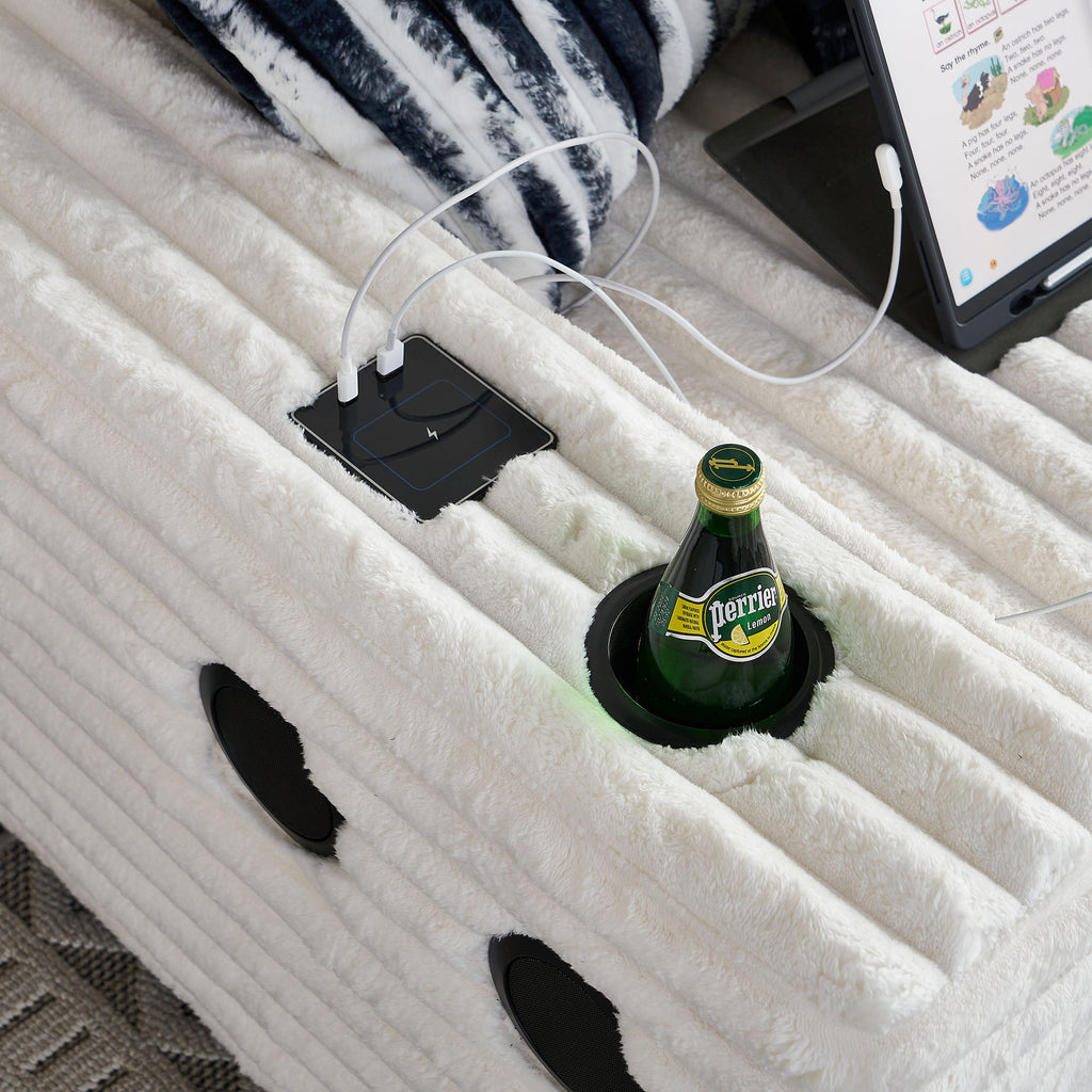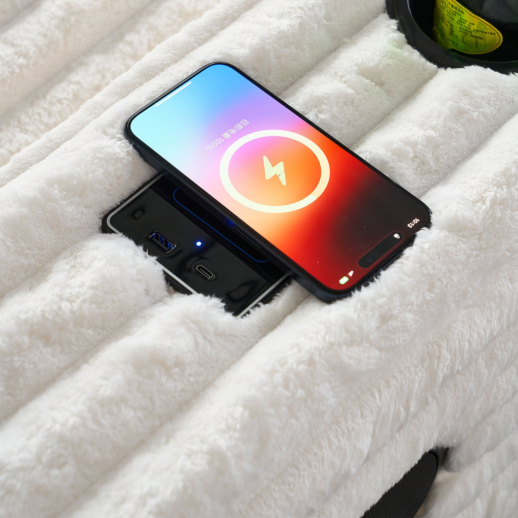 When you have a rest or playing game on the loveseat,you can put your mobilephone on top of the wireless charging device,then it will be automatically charging. You can even connect bluetooth,and listen your favour song and enjoy it.
