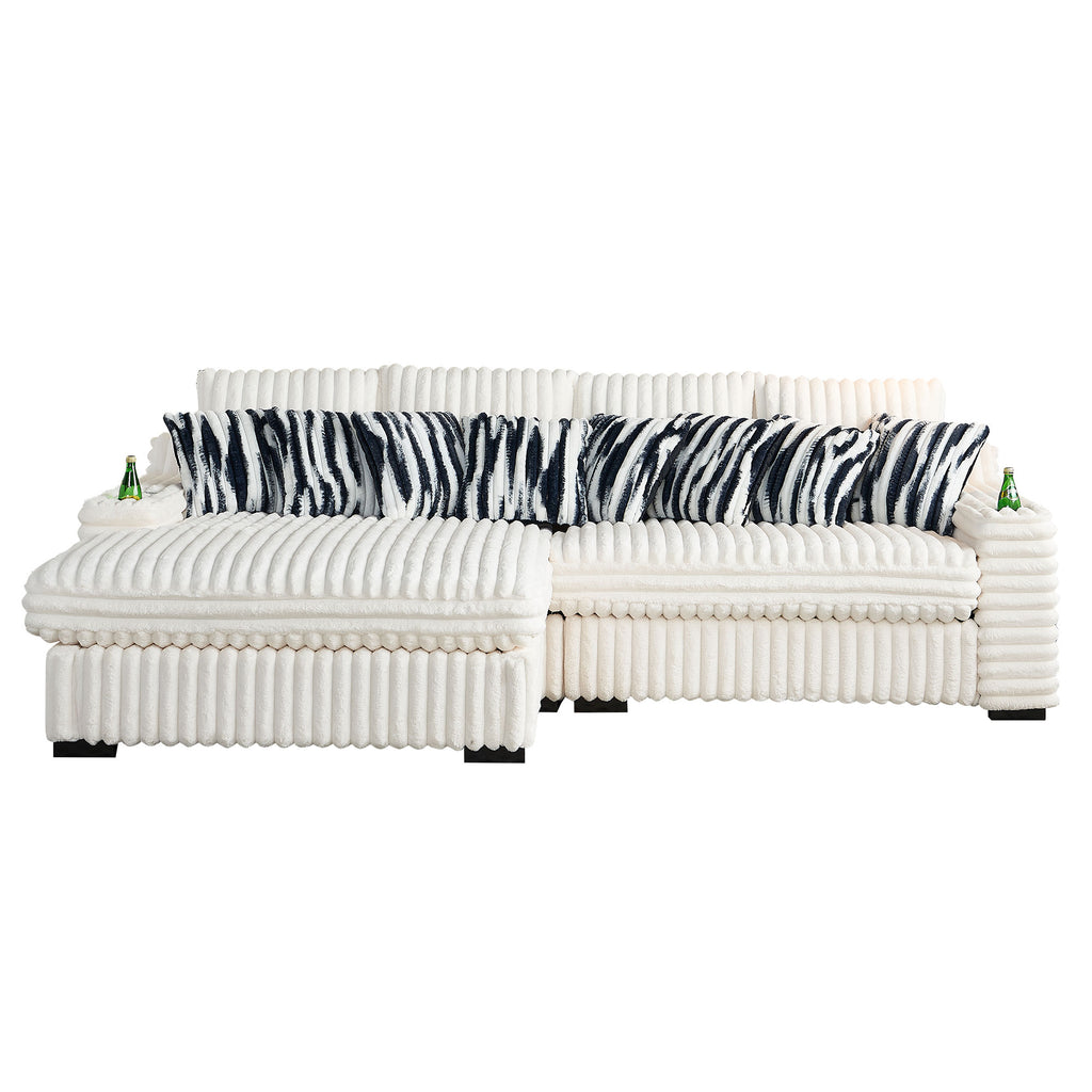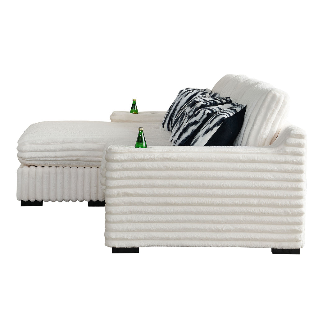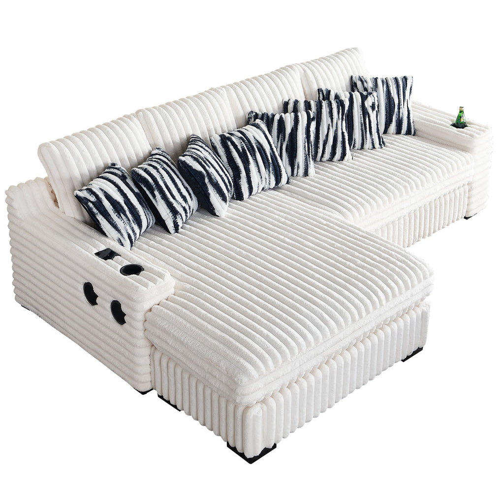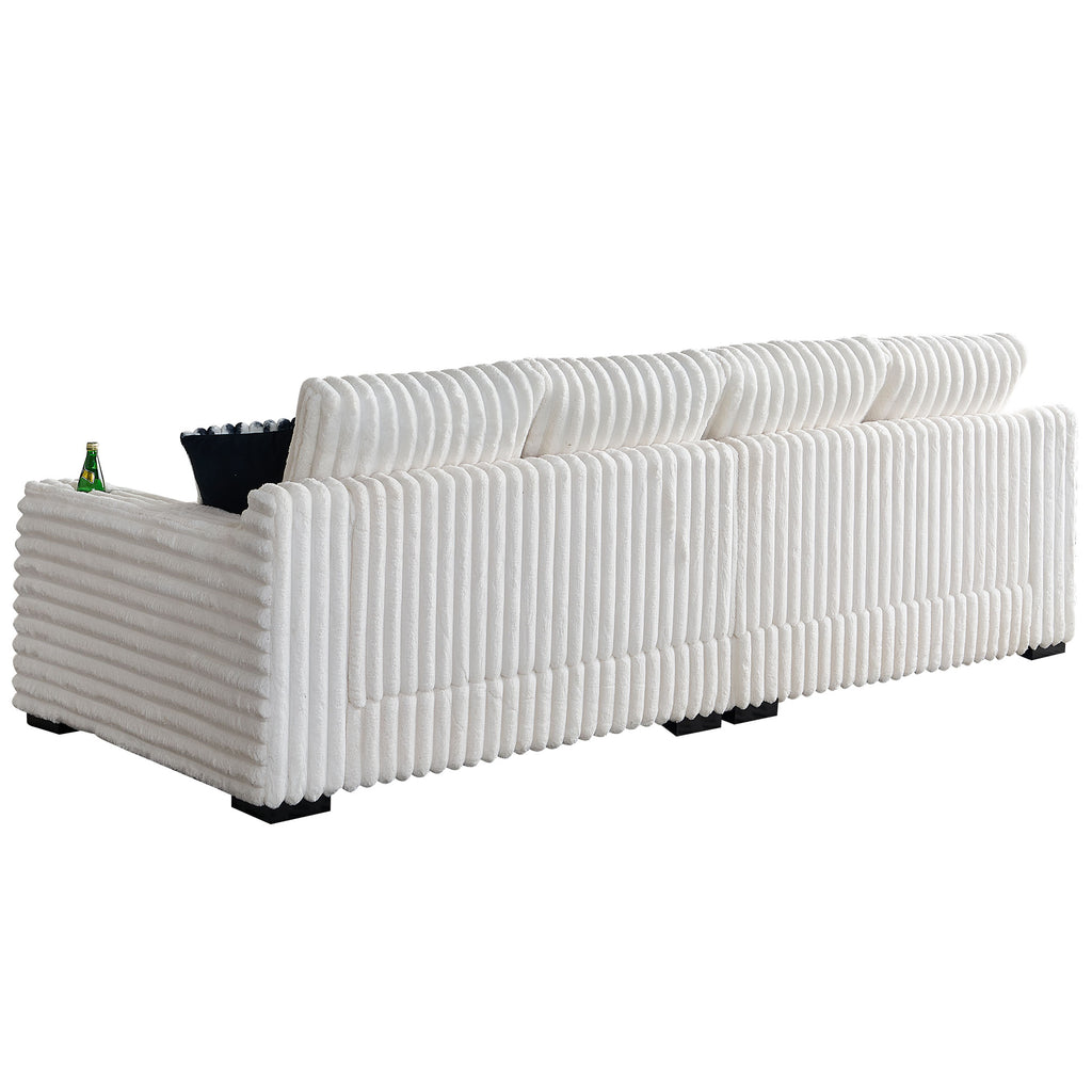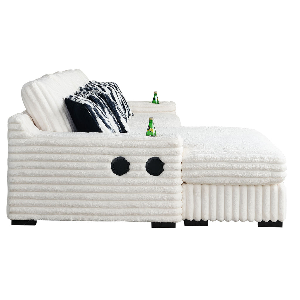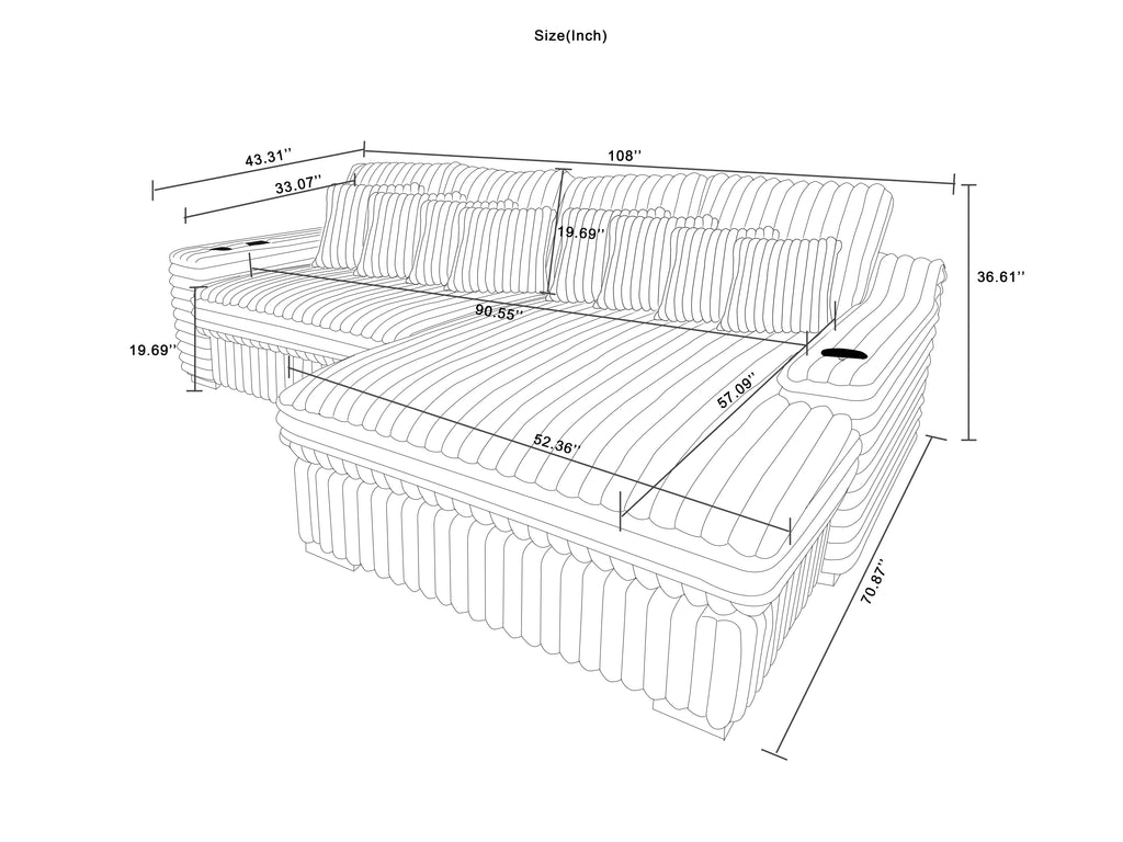 Whether the great conversation is between you and the big game on television or with a good friend on the telephone, the loveseat with ottoman is the perfect piece for supreme, relaxing comfort. Upholstered with soft velvet fabric that features cozy horizontal channeling, this couch has square arms alongside loose cushions and toss pillows.The black cupholder is located on the left of the arm rest to help keep a beverage close at hand. You can put your phone on top of the wireless charging device automatically charge itself, it also provides you two difference of USB ports for selection. Moreover you can connect your mobile through bluetooth to listen your favorite music.The contemporary design of the loveseat is complimented by the beige color of the fabric while L shape rubber wood legs in black finish offer a stunning final detail.