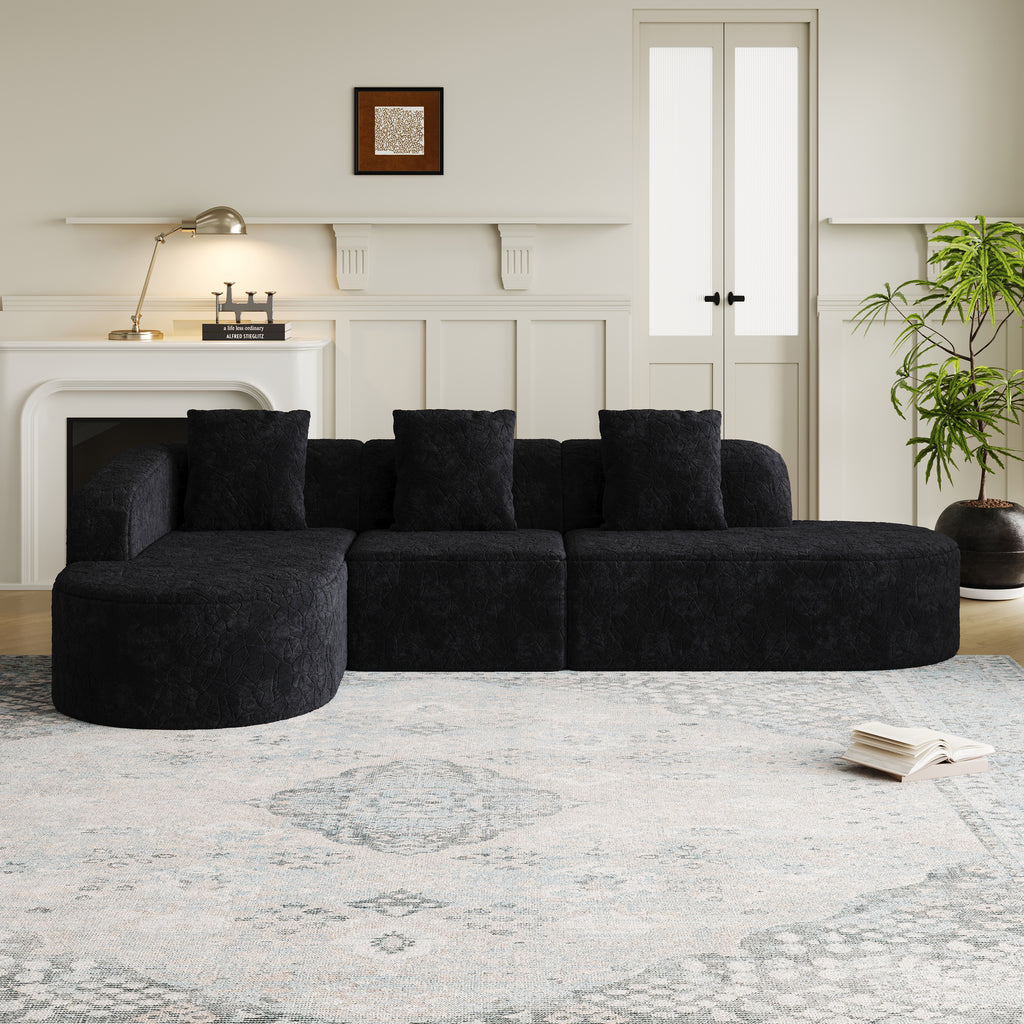 - Extra-Wide Chaise Lounge:This curved modular sofa features an extended chaise lounge section, with both chaise lounges and the center section forming an L-shaped configuration. More stylish and adaptable to various home layouts.