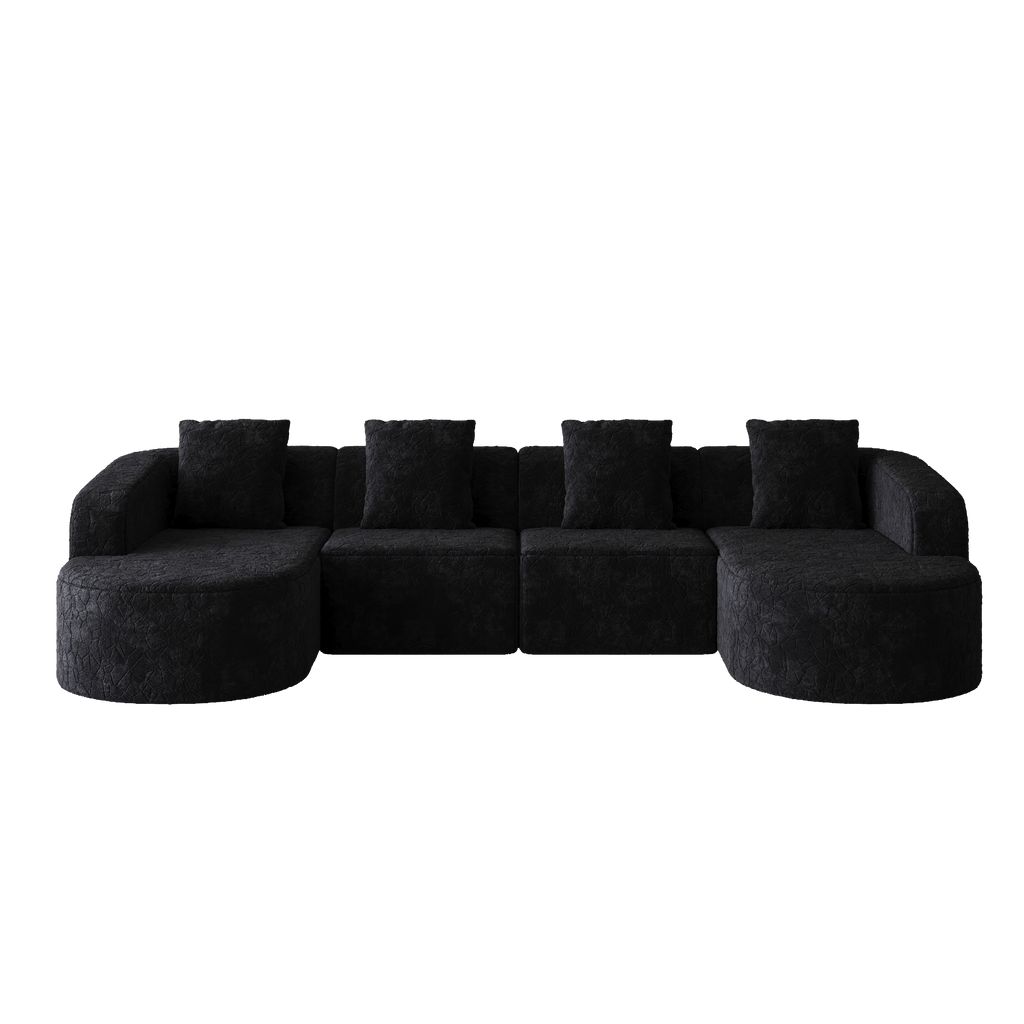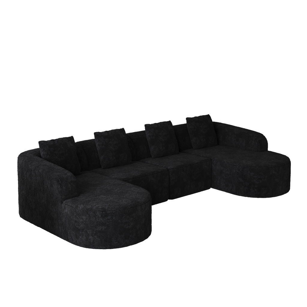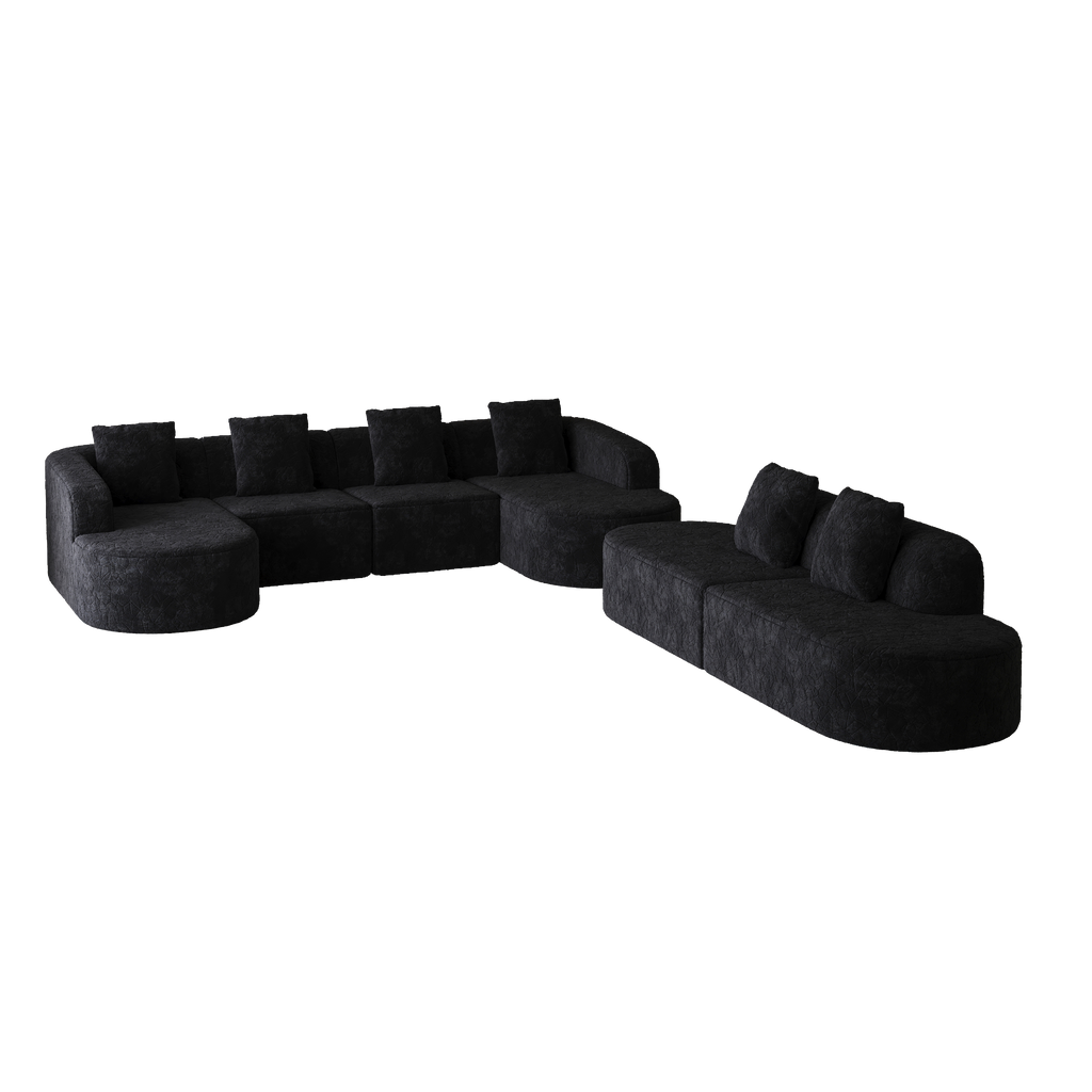 - Extra-Wide Chaise Lounge:This curved modular sofa features an extended chaise lounge section, with both chaise lounges and the center section forming an L-shaped configuration. More stylish and adaptable to various home layouts.