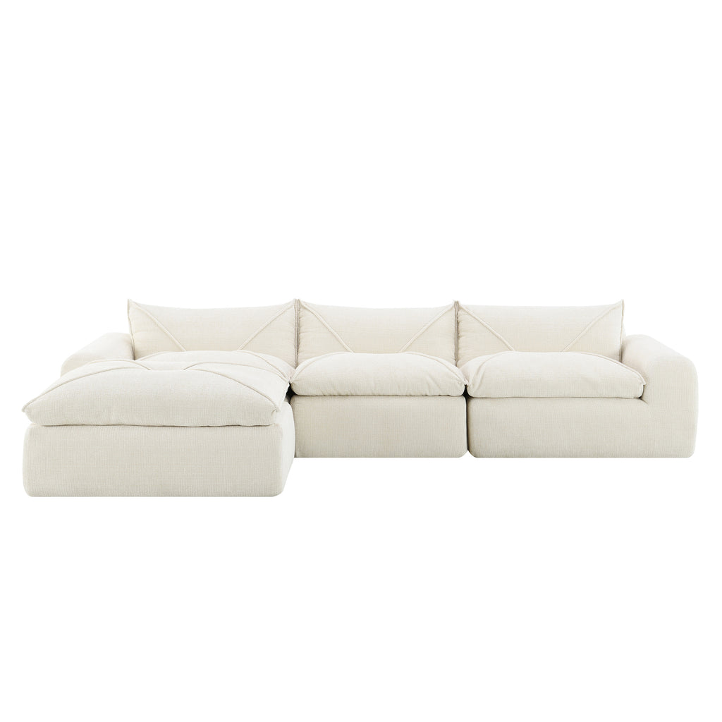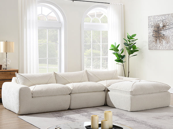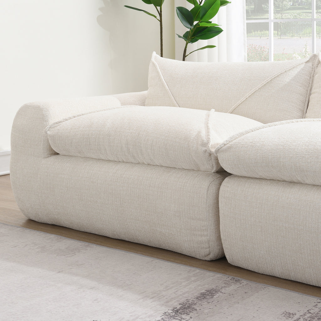 The sofa is made entirely of sponge material without a wooden frame, which makes it easy for users to move around. It is less likely to cause bumps and is very friendly to both infants and the elderly. At the same time, the fully compressed sofa requires no assembly and can be used at any time, saving you time and effort.The sofa consists of two modules, and these two modular components can be freely rearranged to fit the layout and space of your room. The design of the pull wires and pull points on the seat cushions gives the sofa a more three-dimensional appearance. Paired with the high-density sponge used for the armrests and the backrest, it provides sufficient support. This makes the sofa look unique and elegant in appearance, making it suitable for modern interior decoration styles.