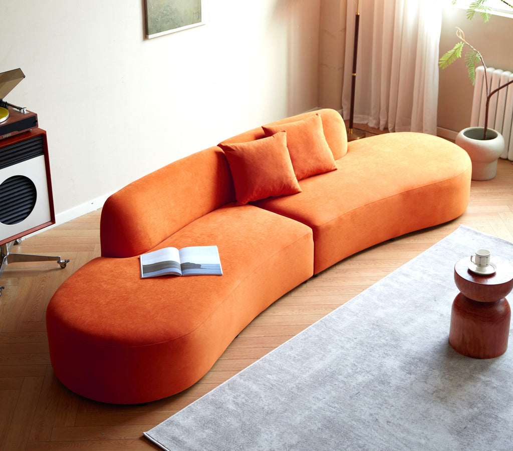 - ERGONOMIC HALF MOON DESIGN: The graceful curved shape not only enhances aesthetic appeal but also provides superior ergonomic support making this sofa couch perfect for lounging or entertaining guests