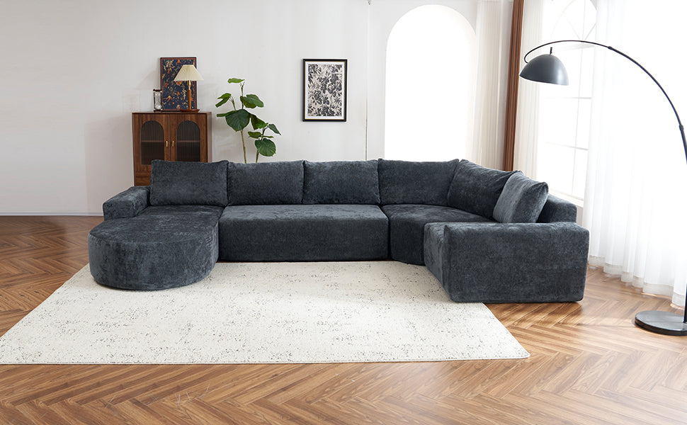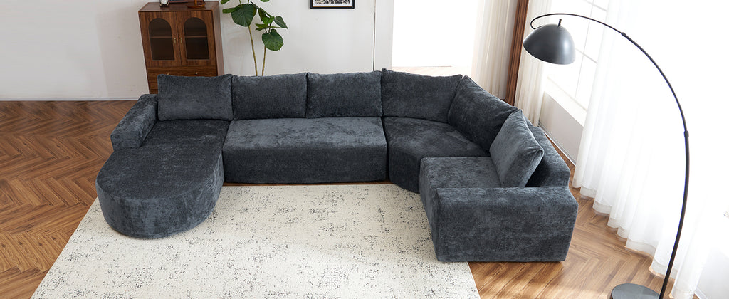 This modular sofa set offers ultimate flexibility with four individual modules that can be rearranged and combined to suit your space and needs. Whether you're creating a spacious sectional or smaller units for a compact area, the minimalist design ensures it fits seamlessly into any modern home while providing maximum comfort and functionality. The sofa is easy to move, with each piece designed for easy navigation through tight spaces, making it ideal for both room rearrangements and relocations. The seat features a blend of pocket springs and high-density foam for exceptional support and durability, while the ultra-soft chenille fabric provides unmatched comfort, enveloping you in a cozy, cloud-like feel. Perfect for both short and long periods of relaxation, this sofa guarantees a soothing and indulgent seating experience.