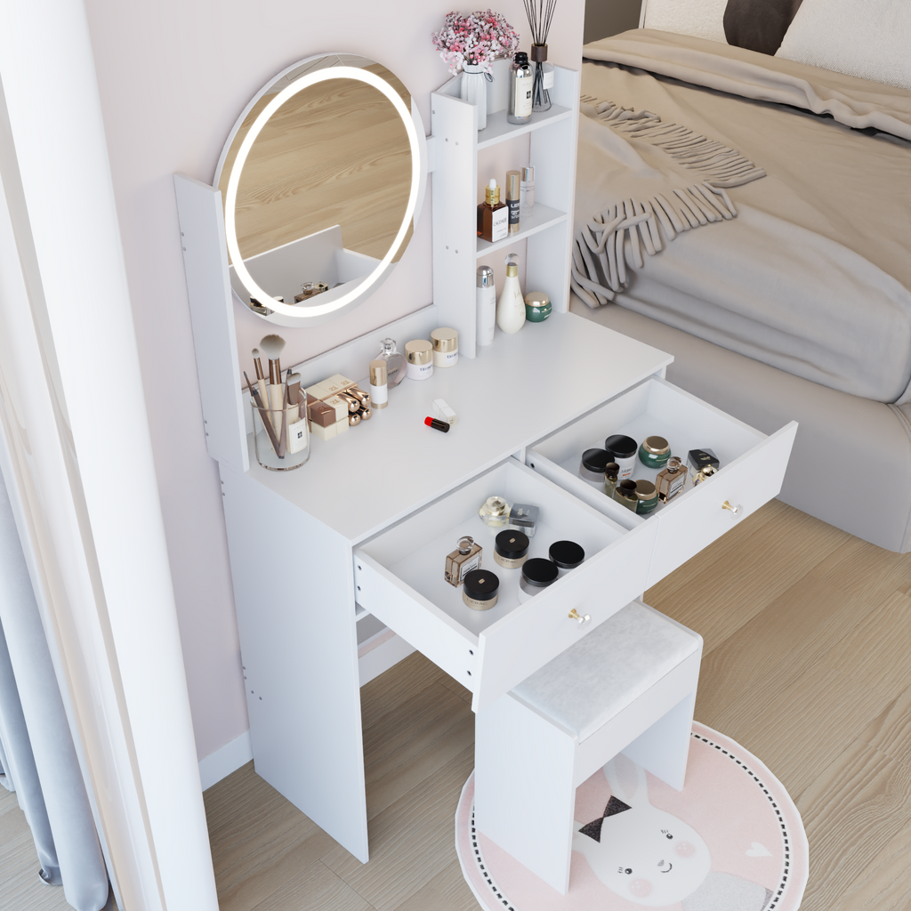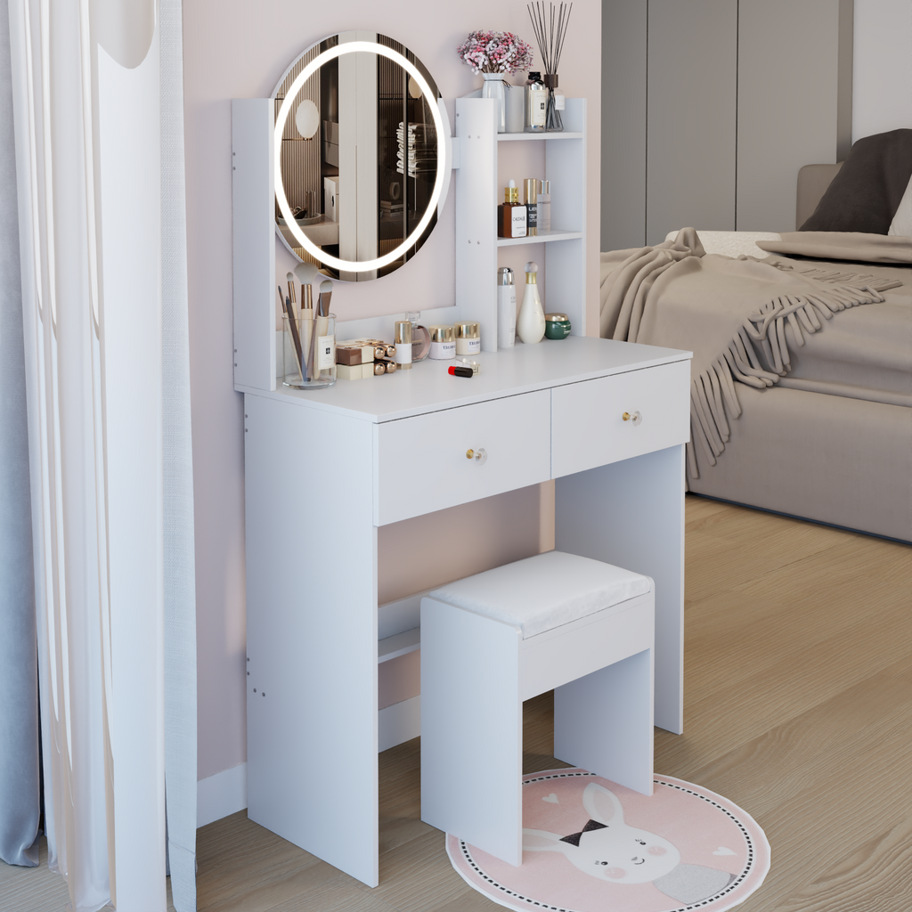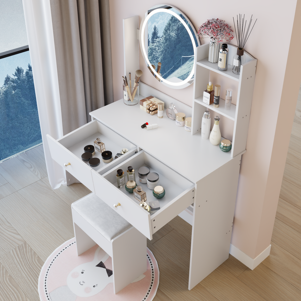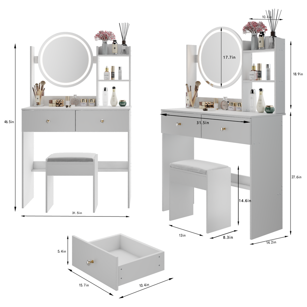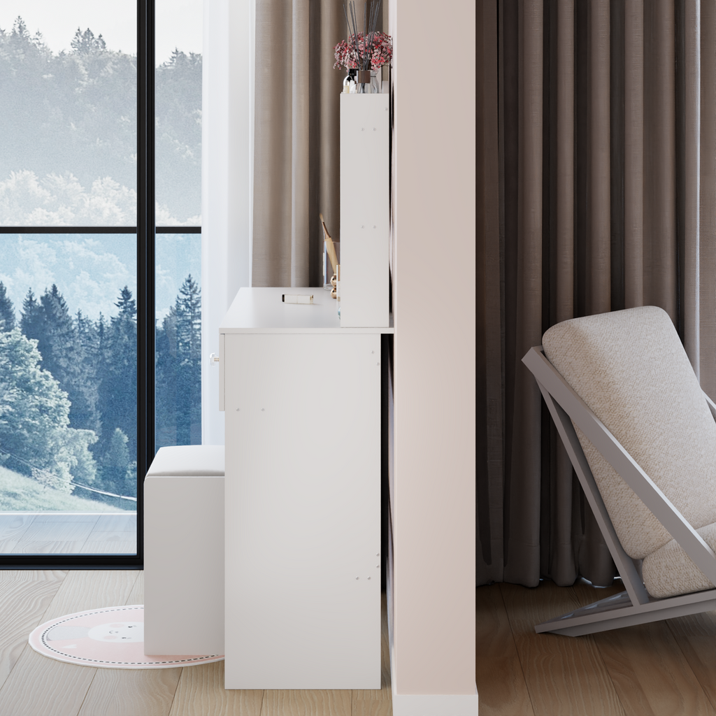 - [Including a dressing table and a cushioned dressing stool]: This is a dressing table set, which includes a dressing table and a cushioned stool. You will no longer need to make additional purchases. This will greatly save you time and delivery costs.