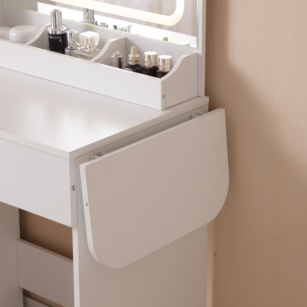 - Makeup table equipped with a large LED mirror: Equipped with a warm, natural, and cold mode lighting mirror, the brightness can be adjusted according to different scenes and makeup needs by long pressing the screen.