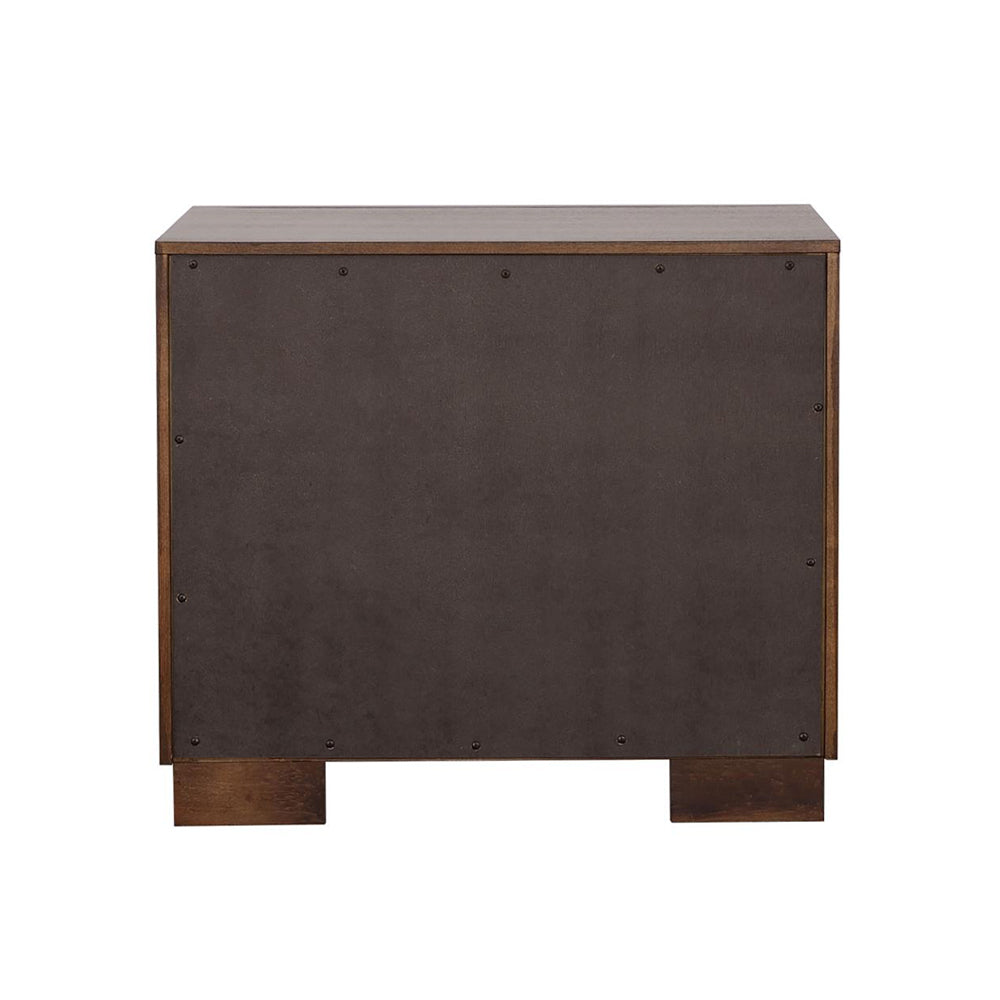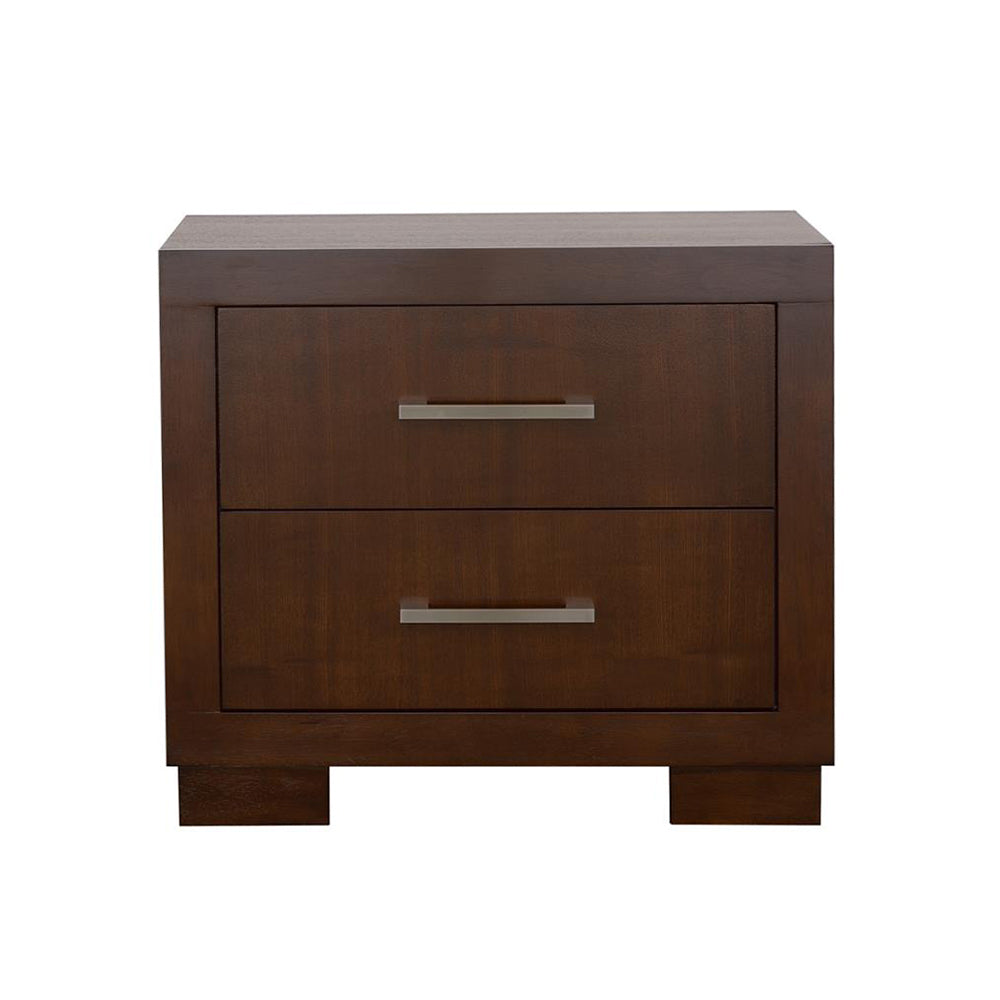 Classic and understated, this lovely wooden nightstand is a great addition to your bedroom. Its two roomy drawers include soft, felt lining, protecting precious pieces while adding a touch of glamour. Its deep, rich, cappuccino finish is accentuated by gleaming, silver tone bar handles. Place a reading lamp on top to illuminate your surroundings to create cozy relaxed nights. This nightstand is an excellent choice to finish off the decor of a guest or master bedroom.
