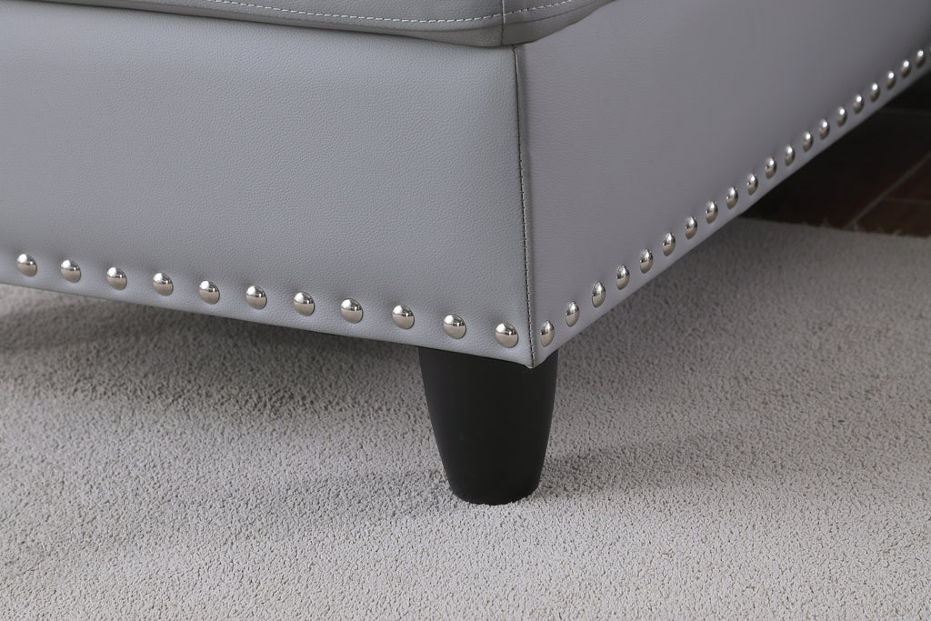 - Nailhead trim gives a contemporary touch
