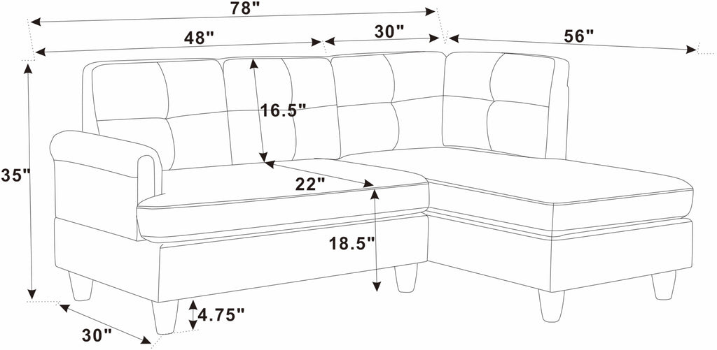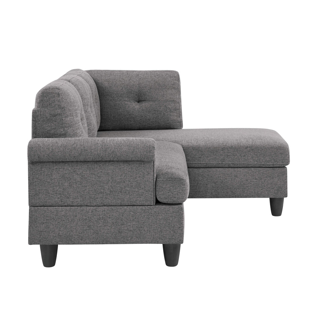 - This right-hand-facing sofa-and-chaise sectional has a modest size that still has a classic look and seats three.