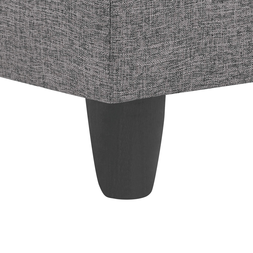 - It's crafted with an engineered wood frame that sits on circular block feet with a black finish.