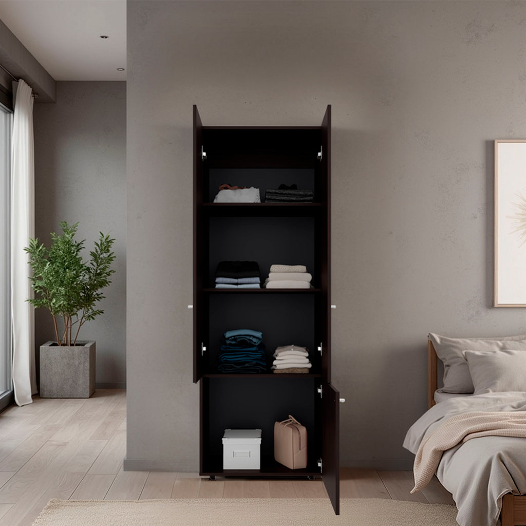 - Multiple interior shelves provide dedicated compartments to keep garments, folded linens, and seasonal items neatly arranged and easily accessible.