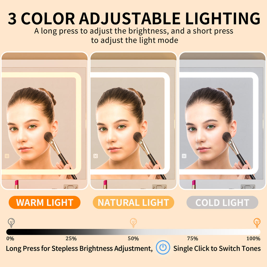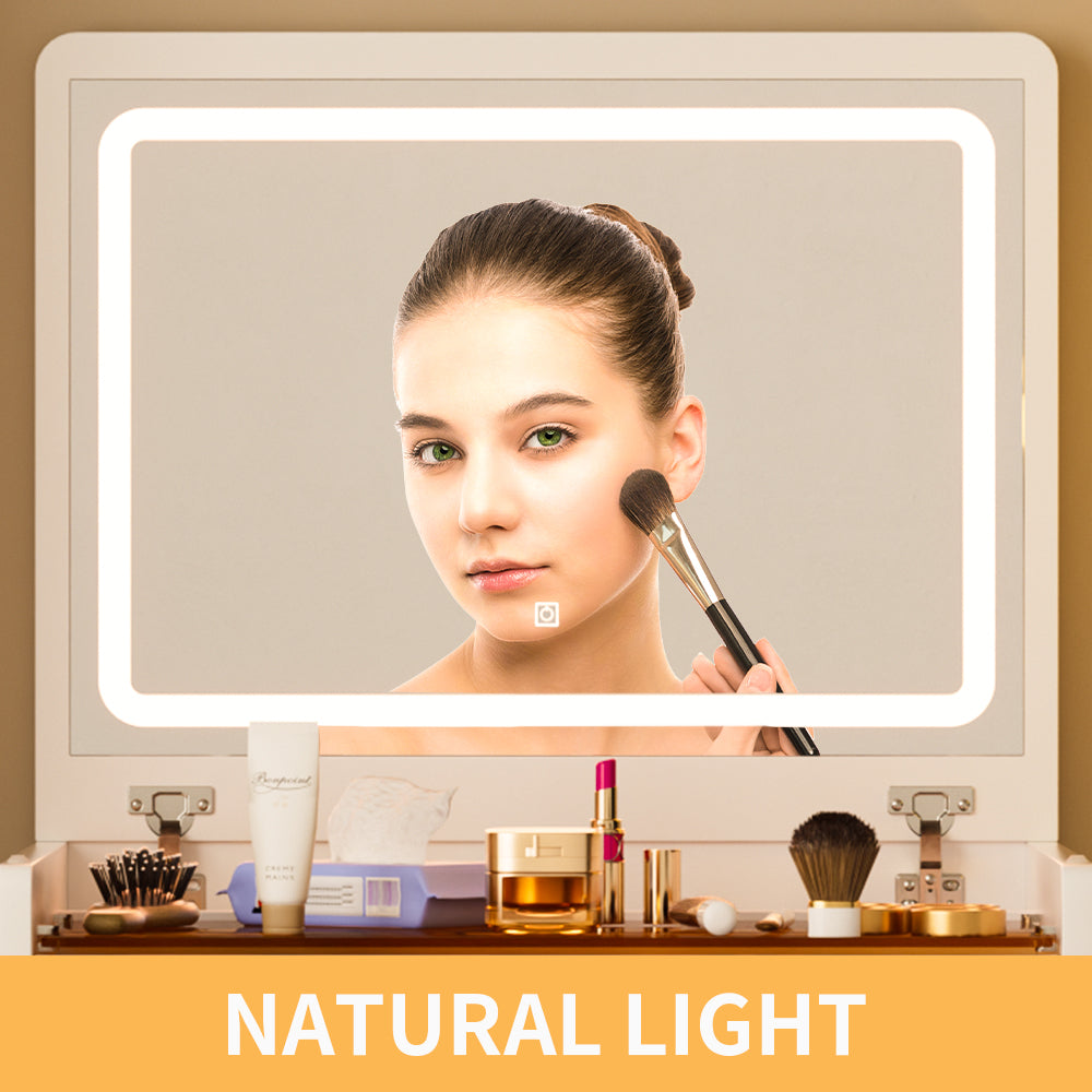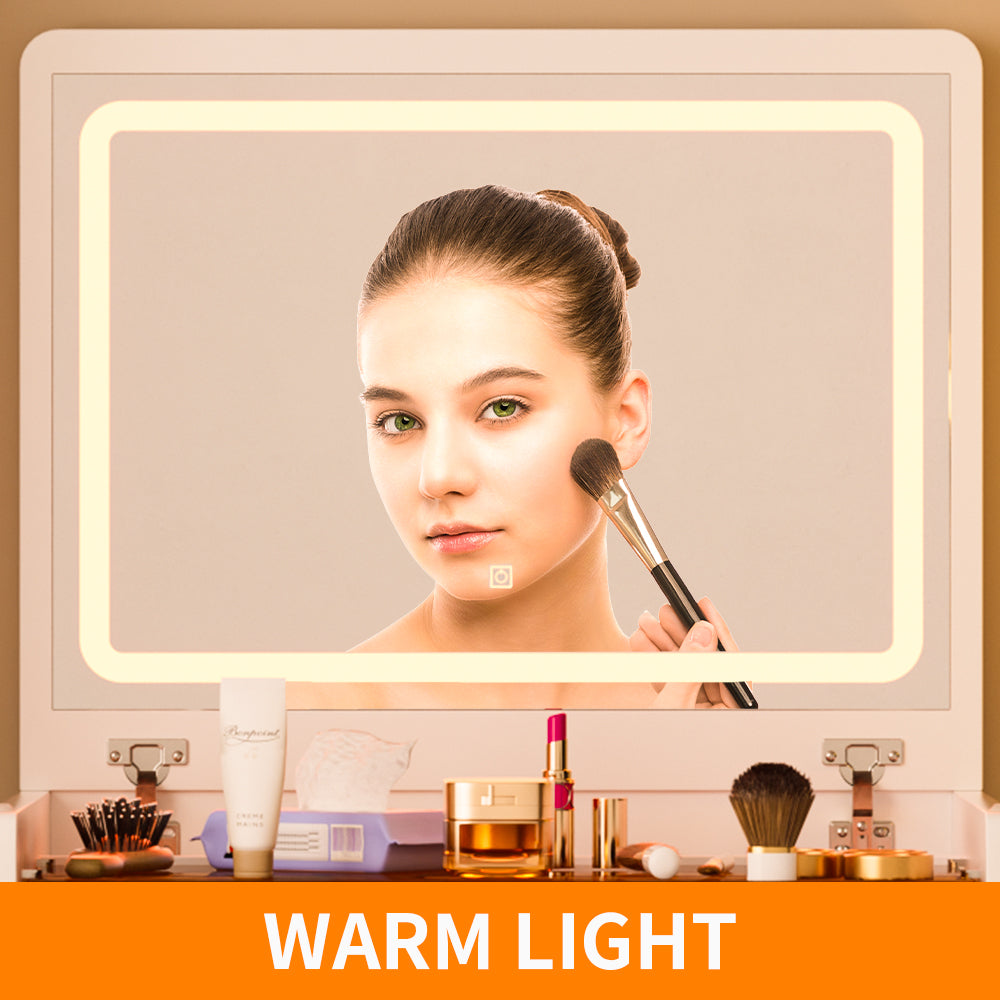 - 【3 in 1 design】vanity, nightstand and a smalloffice desk all in one. The vanity table also comes with a flip-up mirror, which flips open to be a luxury vanity and closes to be a nightstand with great storage space, which is a more space-saving design.