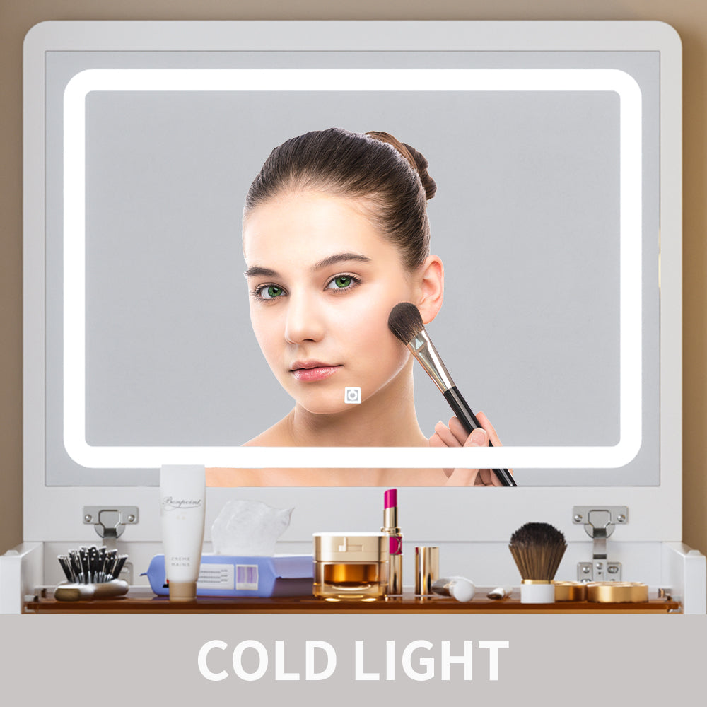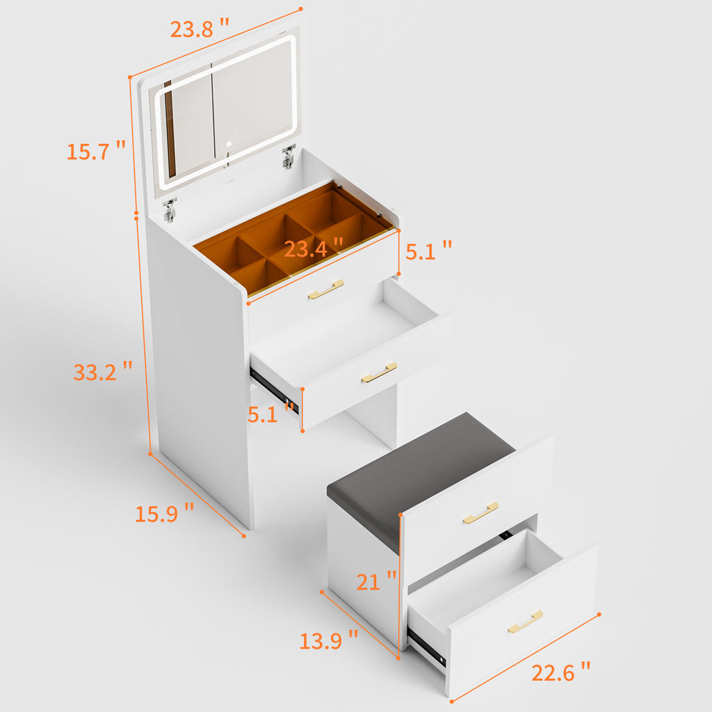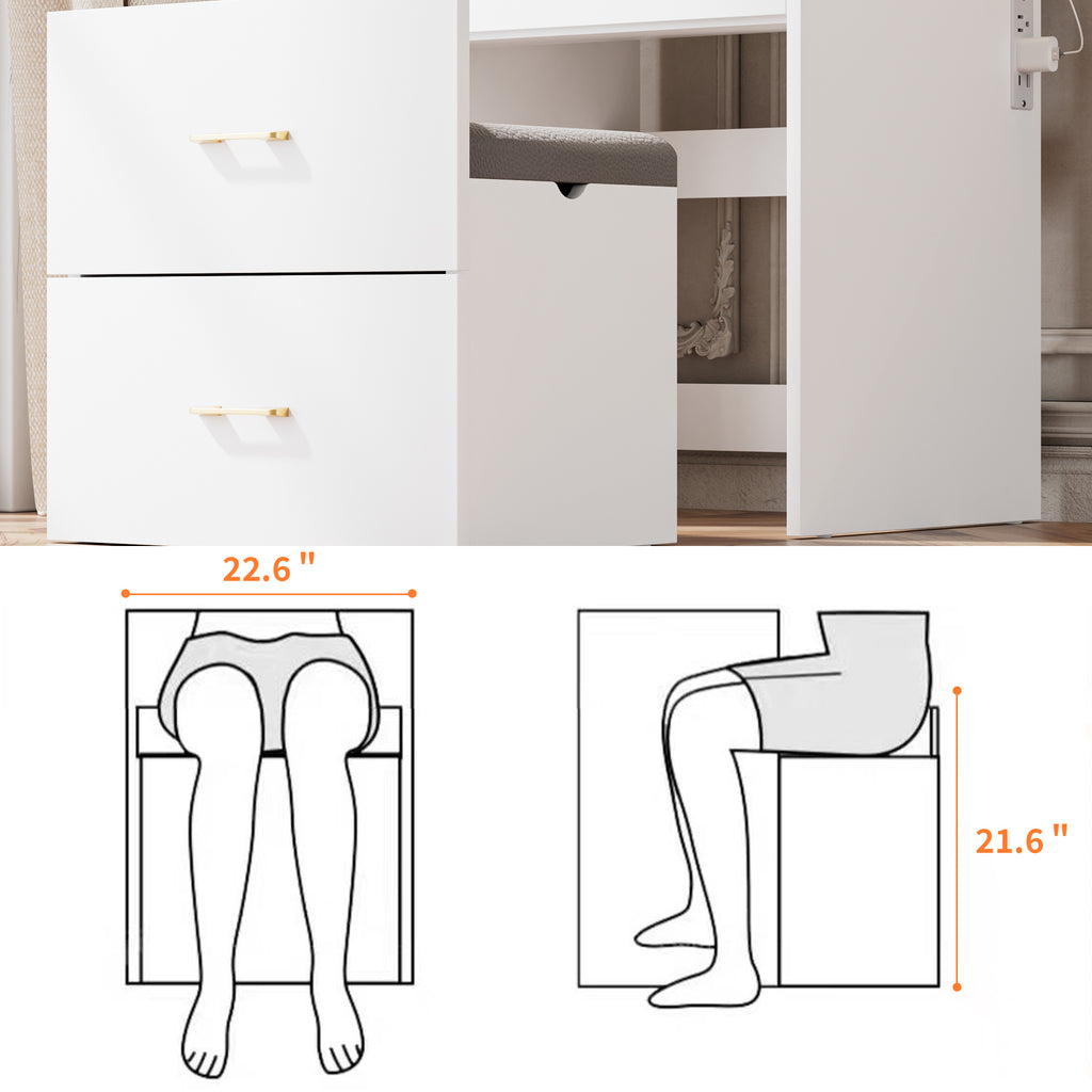 - 【Spacious Storage Space】Equipped with a flip-top jewelry organizer, a hidden storage space(8') for your tall bottle skin product,a drawer,a fluffy bench with a large organizer drawer that holds a large amount of makeup and jewelry,skin care products.