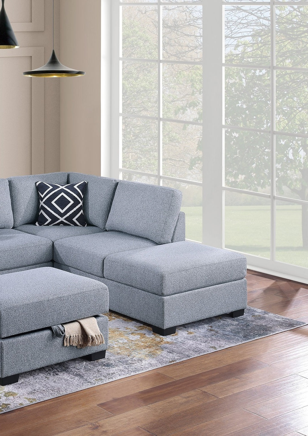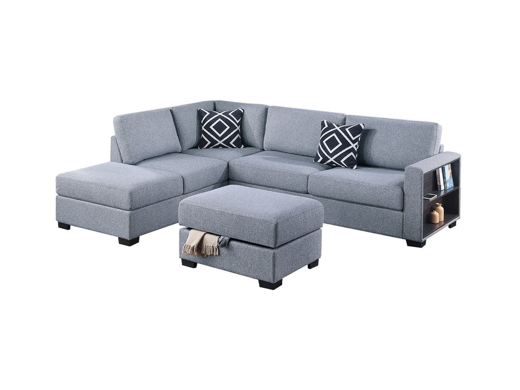 - Listing Includes - 3pc Sectional Sofa Set (Reversible Chaise, Sofa w Built-In Shelf And Storage Ottoman ) Only.