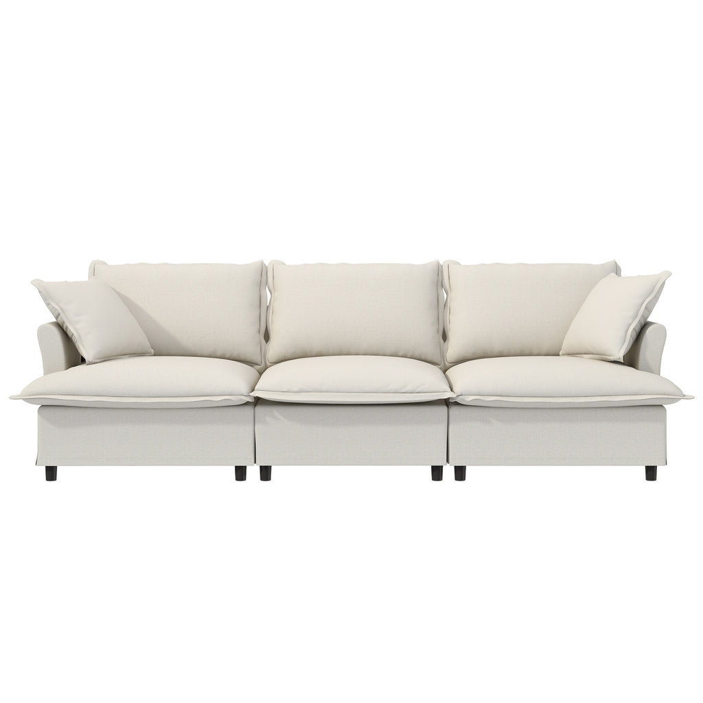 Discover endless possibilities with our modular sofa! Featuring three movable modules—three-seater, single seat, and ottoman—you can easily customize the layout to fit any space. Need more? Simply purchase additional modules as needed. Perfect for various room sizes and interior styles, its elegant skirted seat design and petal-shaped armrests bring a touch of sophistication to your home. Enjoy versatile, stylish comfort with our adaptable, modular design!