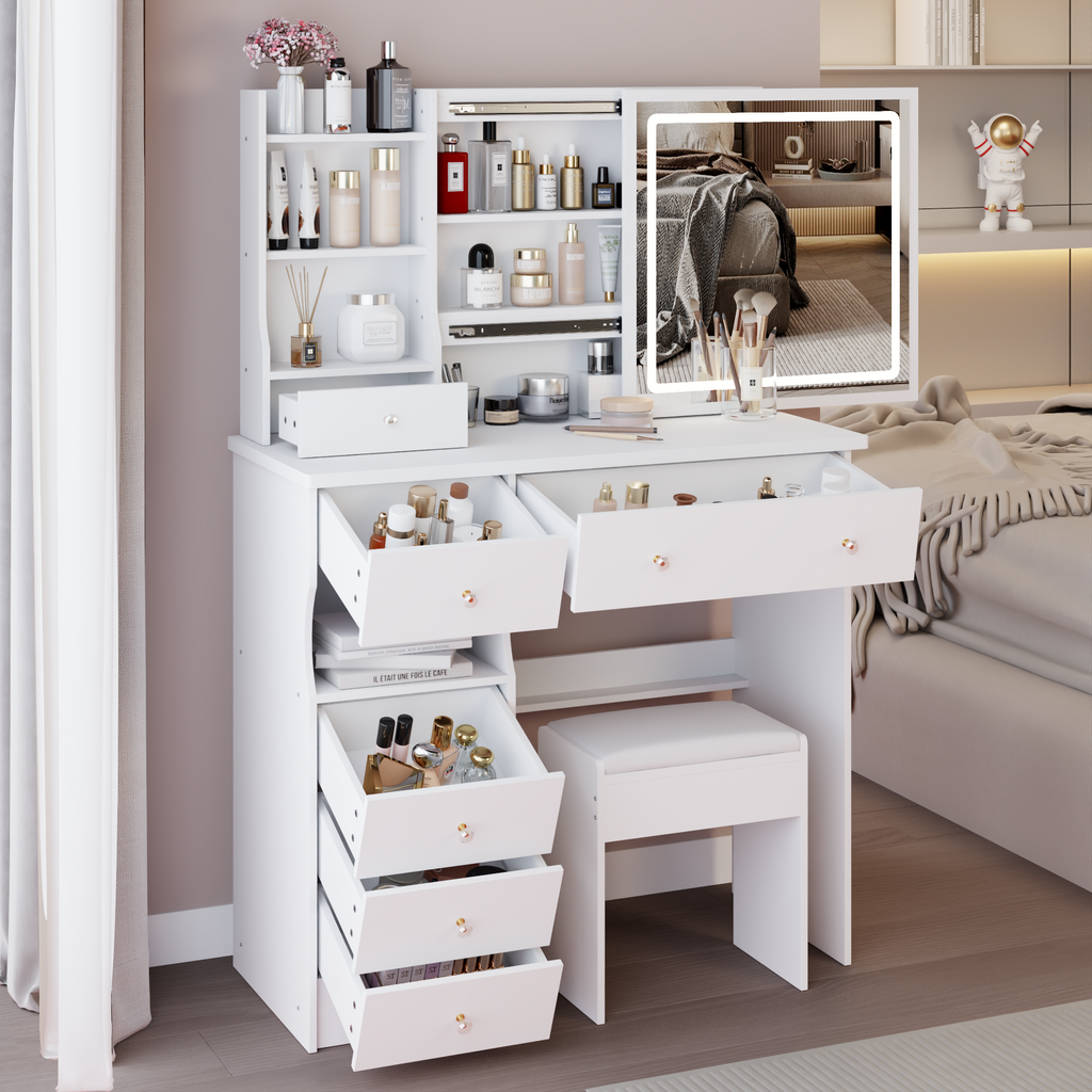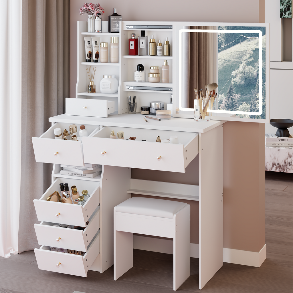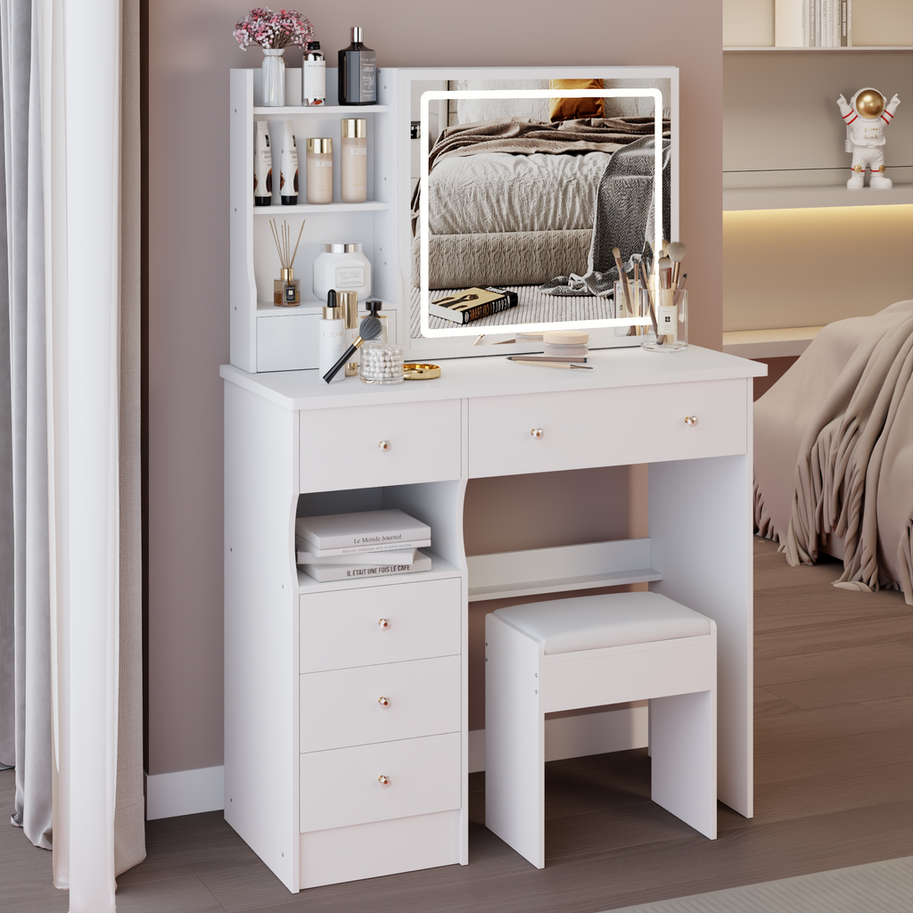 - [Including a dressing table and a cushioned dressing stool]: This is a dressing table set, which includes a dressing table and a cushioned stool. You will no longer need to make additional purchases. This will greatly save you time and delivery costs.