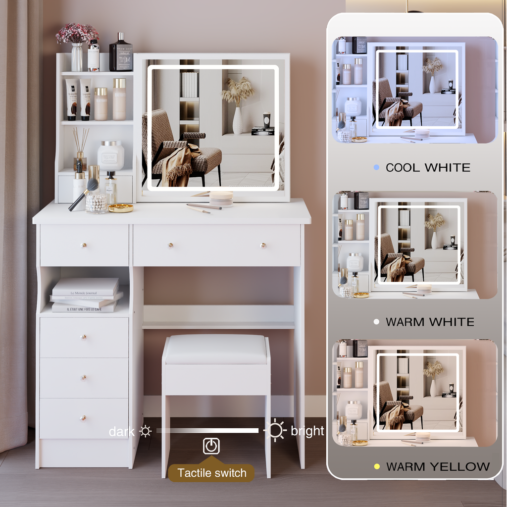 - [Configuration]: This dressing table is a basic version, including a mirror light, not include built-in socket or hair dryer stand. Due to the same installation steps for the same product with simple, basic, and luxurious configurations, the installation manual is in a universal form.