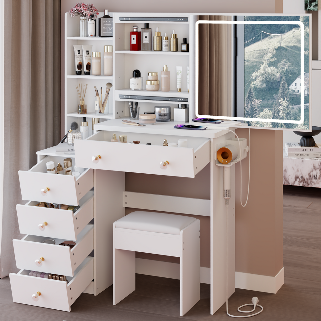 - [Includes a padded dressing table stool]: The packaging includes a dressing table and a padded stool. You will no longer need to make additional purchases. This will greatly save you time and delivery cost.