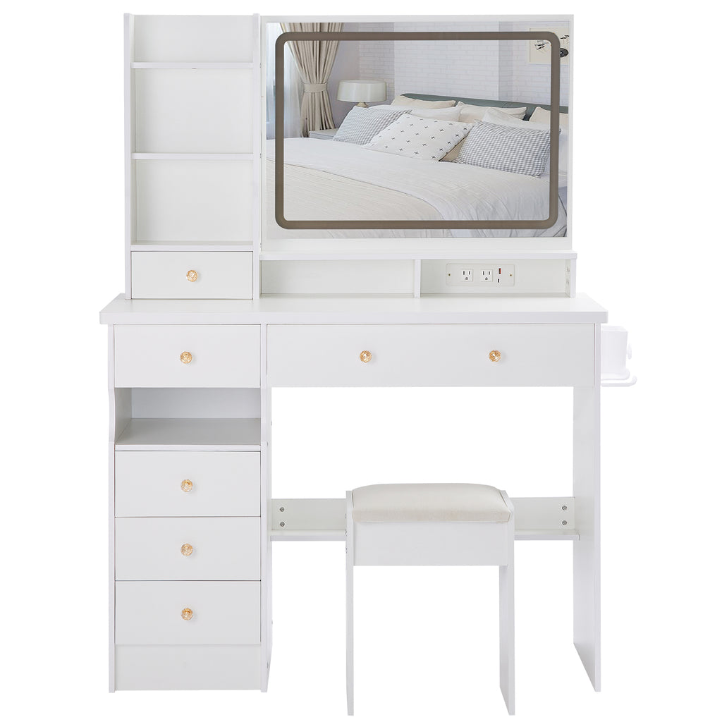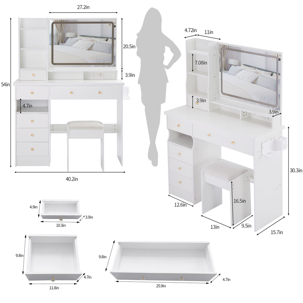 - [Includes a padded dressing table stool]: The packaging includes a dressing table and a padded stool. You will no longer need to make additional purchases. This will greatly save you time and delivery cost.