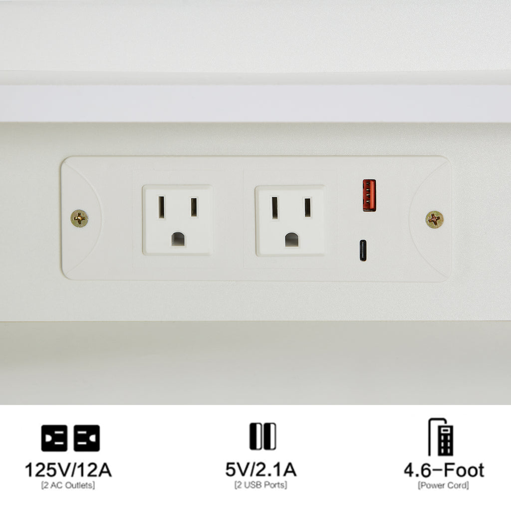 - [2 AC powers and 2 USB ports built-in socket]: Equipped with 2 built-in AC powers and 2 USB ports socket, it can conveniently charge phones and tablets while you are dressing up. Two AC power sources allow you use both a curler and a hair dryer simultaneously.