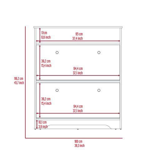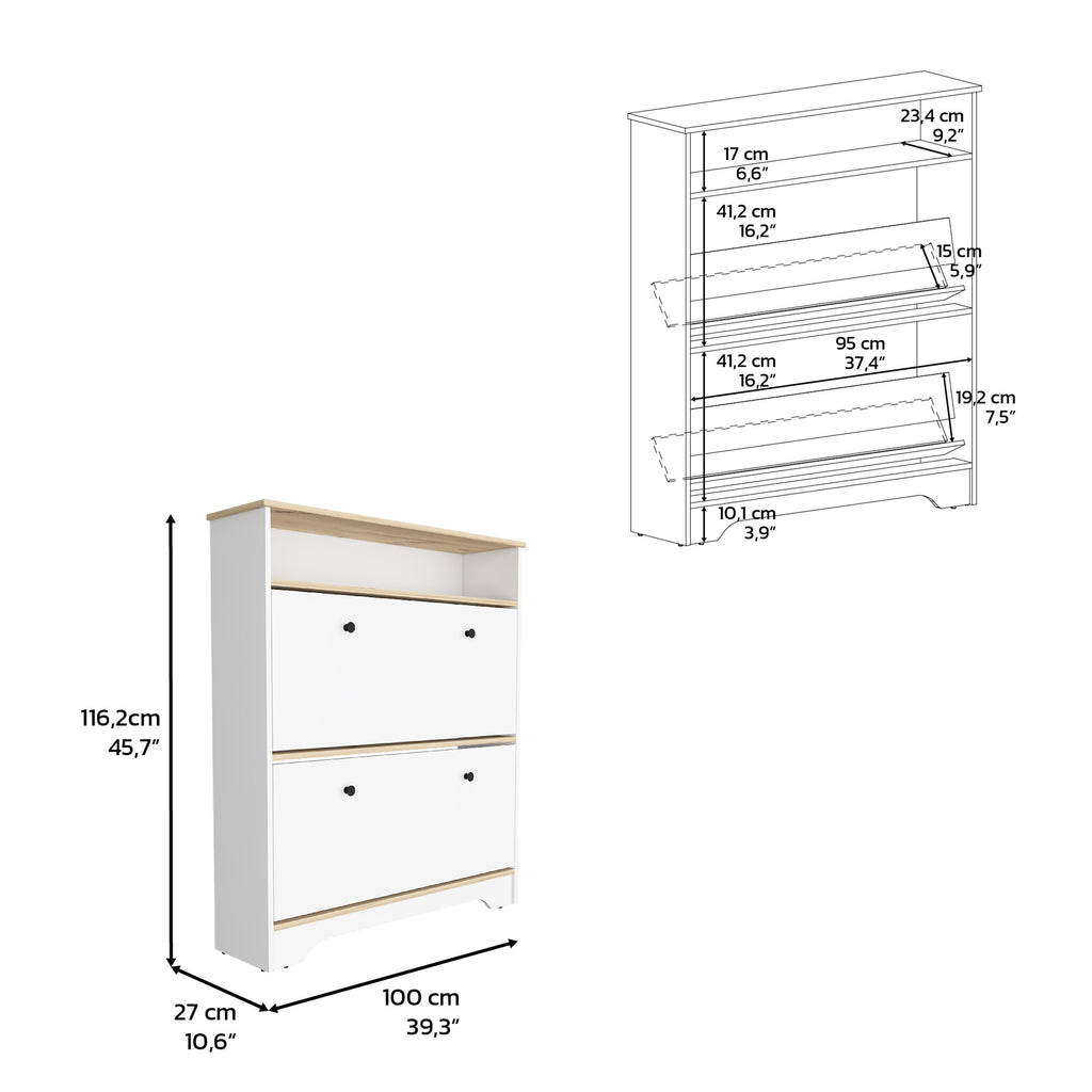 - Enough space to store up to 12 pairs of shoes with its two ample flexible shelves (37,4'W X 15,4''H)