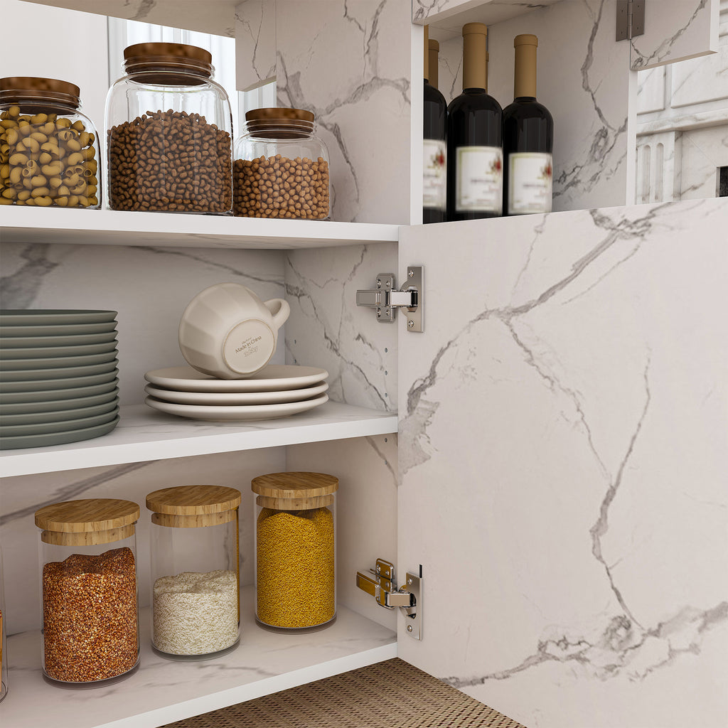 - Mobility and Storage System:The table is equipped with four universal casters featuring fixing locks, allowing easy movement and precise positioning. It incorporates five storage shelves, including two concealed behind doors, enabling organized storage for items like tableware and documents while maintaining a clean visual appearance. This combination of mobility and ample storage makes it particularly suitable for space-constrained environments.