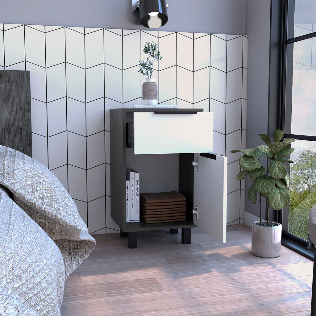 Kaia Z Nightstand End Side Table Drawer Cabinet Smokey Oak White