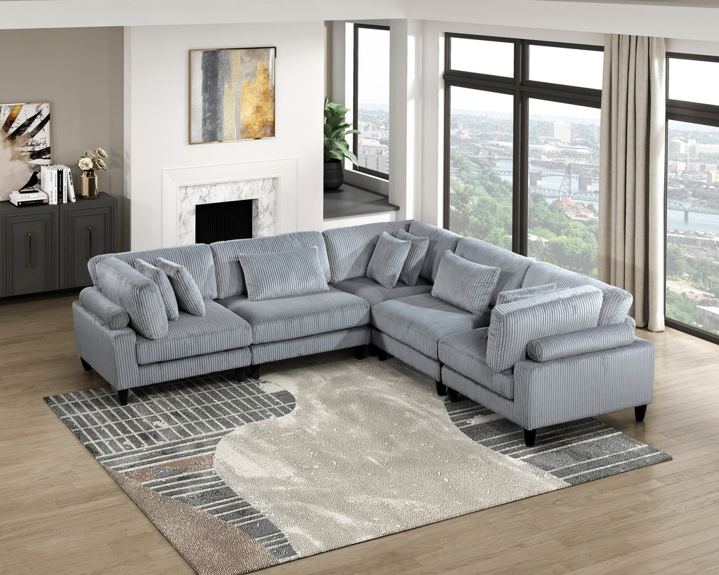 5-PIECE MODULAR SECTIONAL- GRAY CORDUROY FABRIC UPHOLSTERY