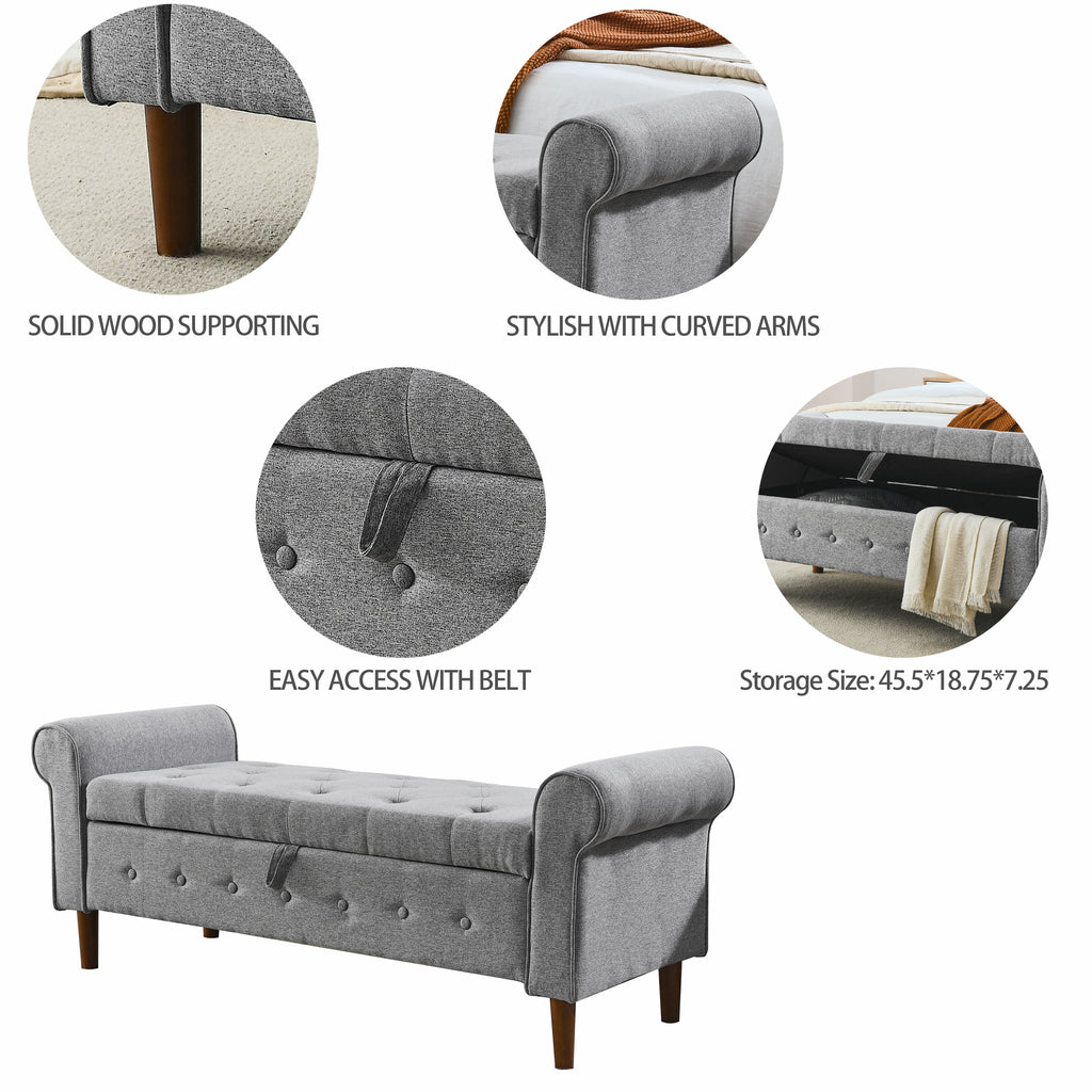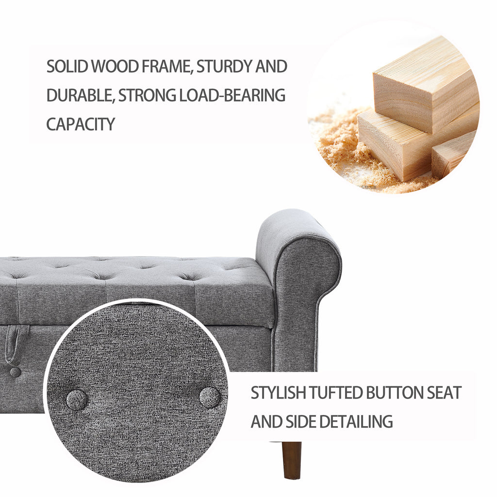- MULTIFUNCTIONAL USE: This bench can be used as extra seating while putting on shoes, as a bedside bench in the bedroom, as a relaxing bench in front of the fireplace, or as storage for pillows and blankets. This bench uses secure snap hinges so the lid opens automatically while still ensuring a gentle closure. We've also carefully designed the tabs to make it easy to open.