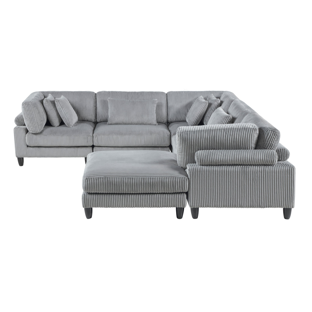 6-PIECE MODULAR SECTIONAL- GRAY CORDUROY FABRIC UPHOLSTERY