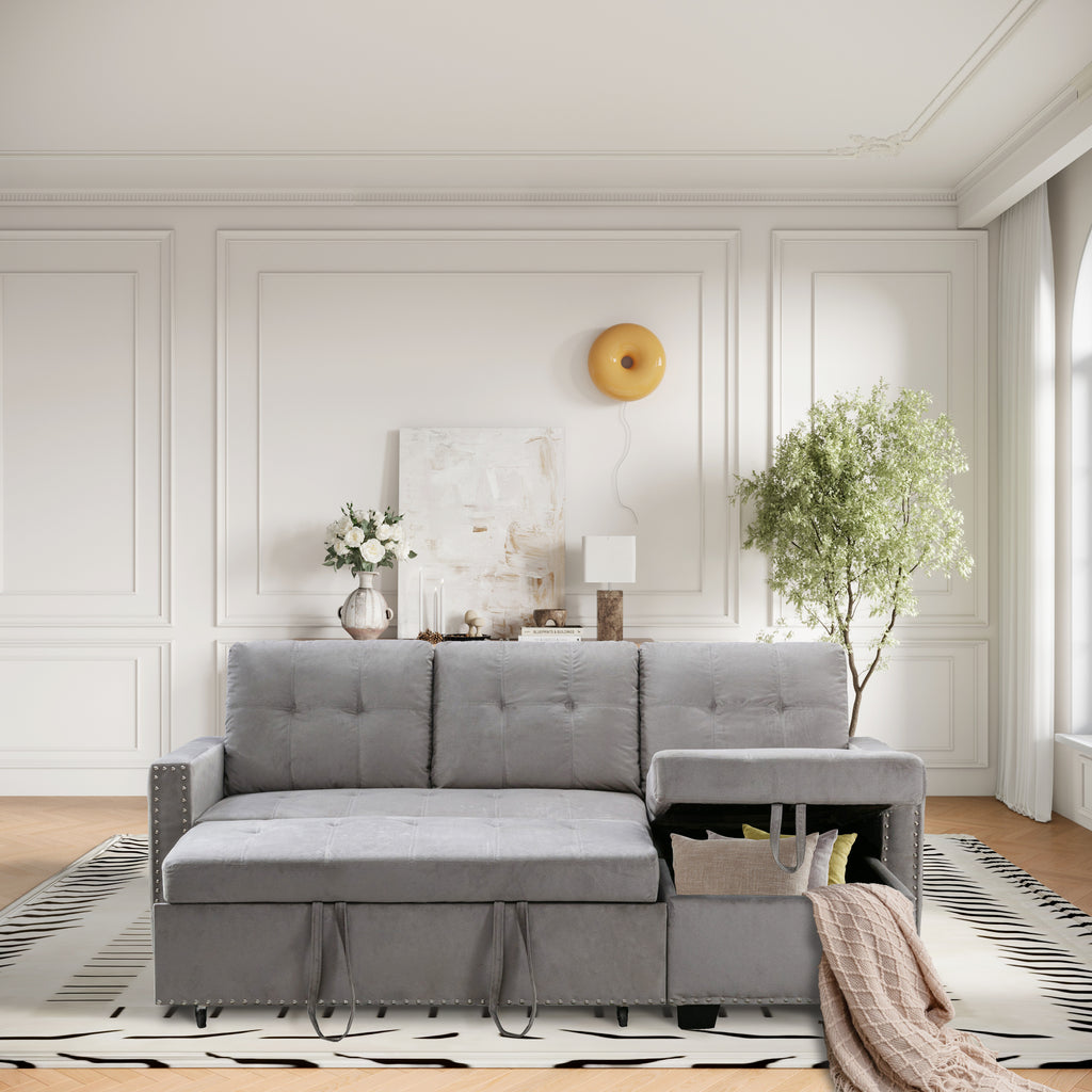77 Inch Reversible Sectional Storage Sleeper Sofa Bed,2 seats with big storage chaise.