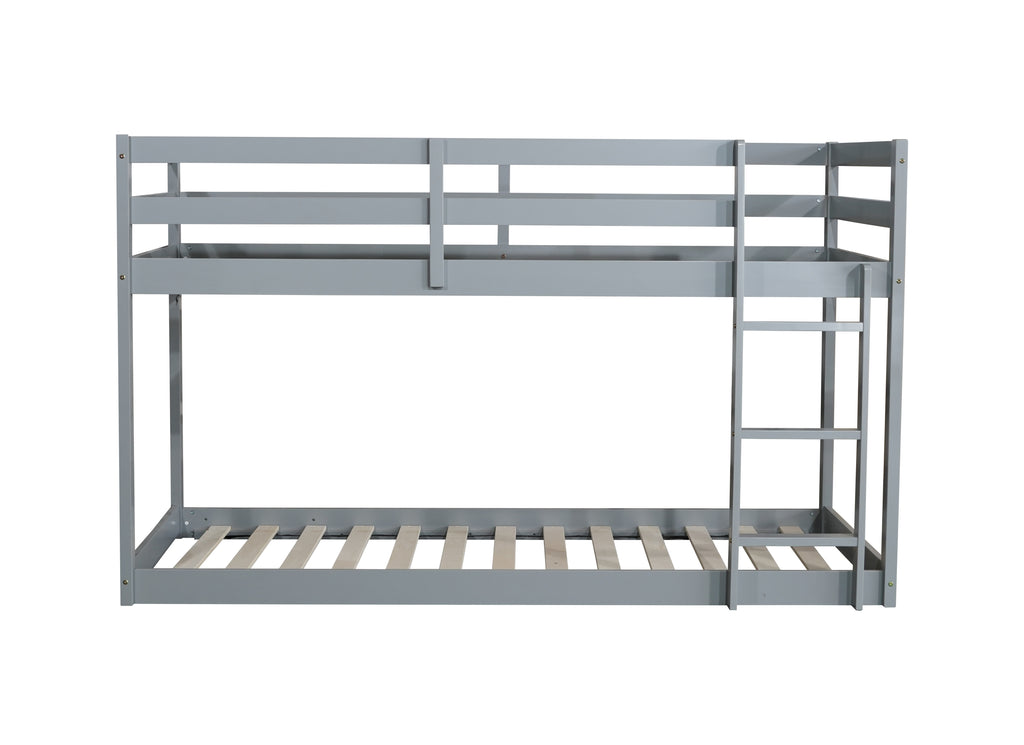 - #1 [Twin over twin bed Design]The low height feature of this twin over twin bunk bed not only ensures better stability but also increases versatile utilization. The unique design offers diverse sleeping preference as well as optimizing storage space. The ladder is crafted with a wider width to provide more spacious steps and solid support, making it easier for you to climb up and down the ladder.