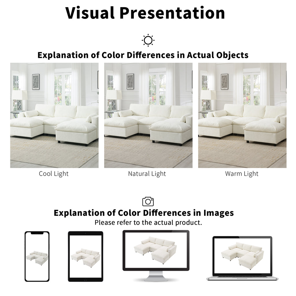 This sofa offers the perfect combination of functionality and comfort. The storage pockets on both sides provide convenient storage options for your belongings, while the removable ottomans offer flexibility in seating arrangements. The Chenille fabric ensures a cozy and comfortable seating experience, and the two free small throw pillows add an extra touch of comfort and style. With its practical features and stylish design, this sofa is a great choice for any living room.
