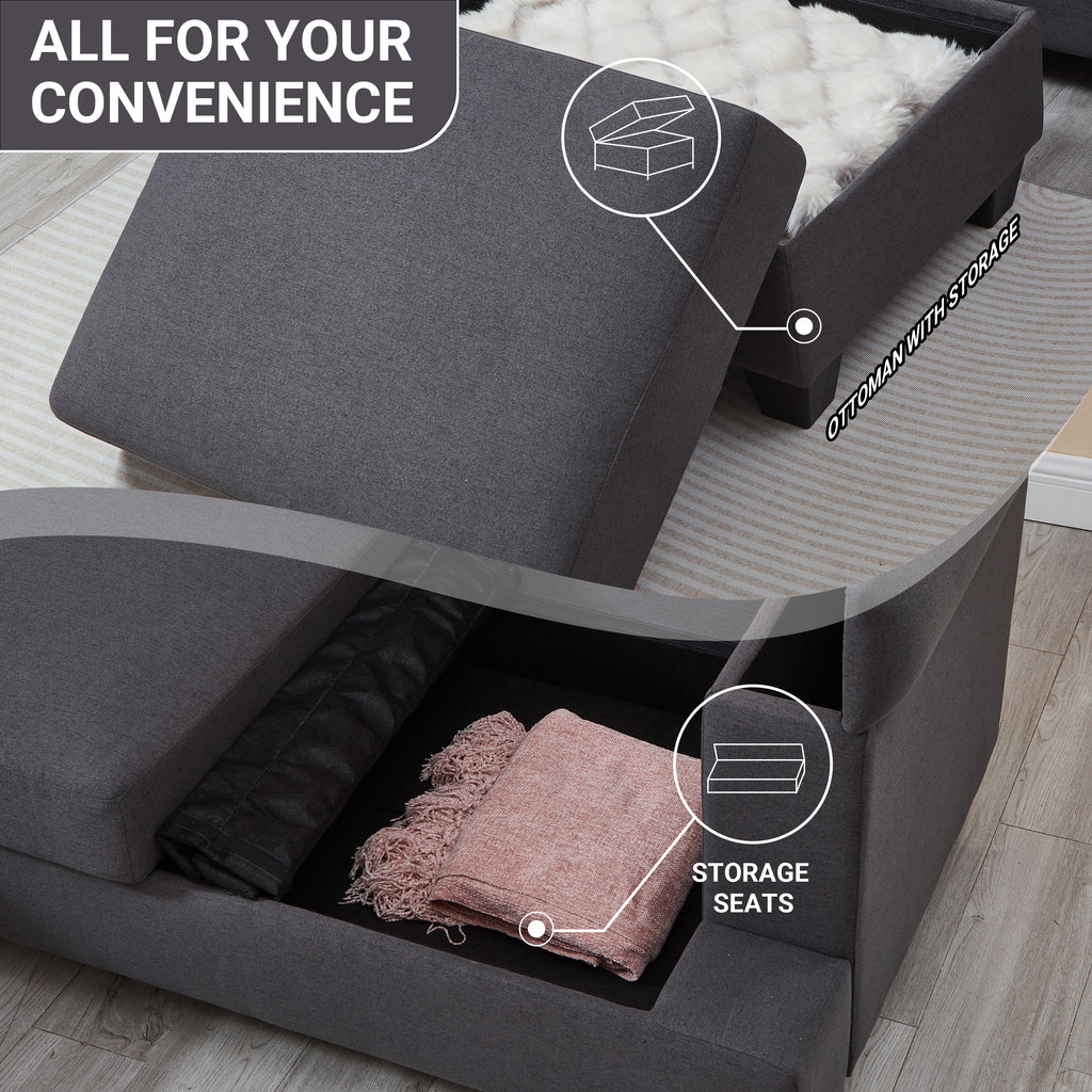 - Movable Ottoman:The ottoman can be a chaise,also a seat.And it’s spacious storage space, modern sofa store essentials or seasonal items within for convenient access at all times, keeping room organised.