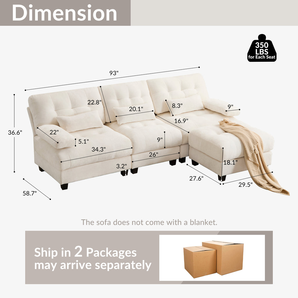 - 【93-Inch 3+1 Seating Design】This thoughtfully sized sofa combines a 3-seater main unit with a matching ottoman, creating a versatile seating arrangement for modern living spaces.