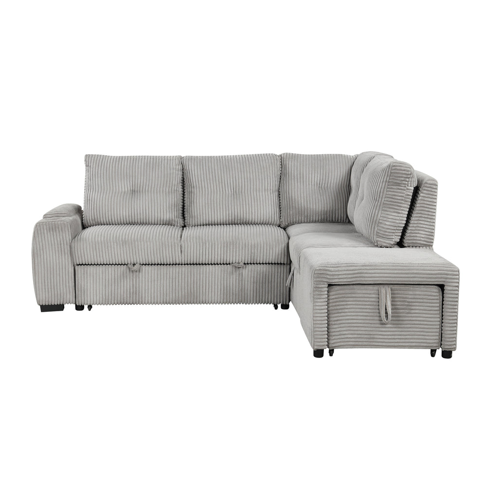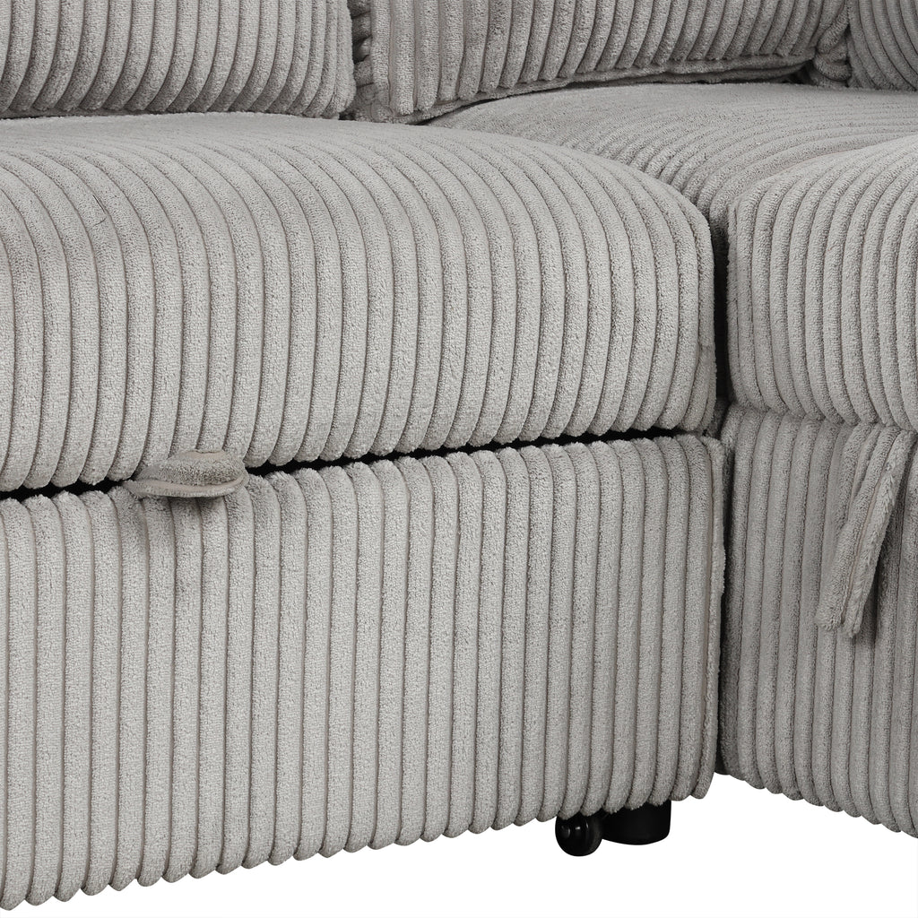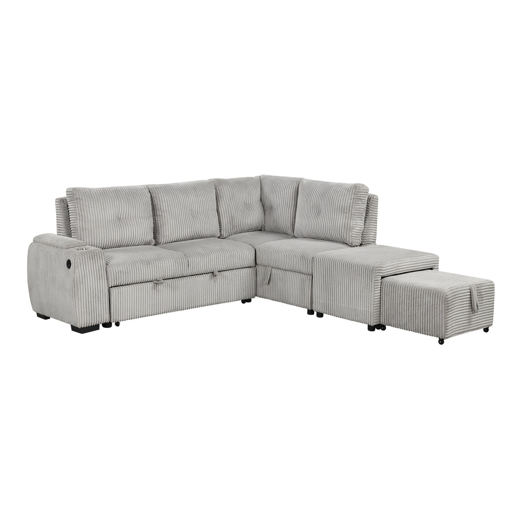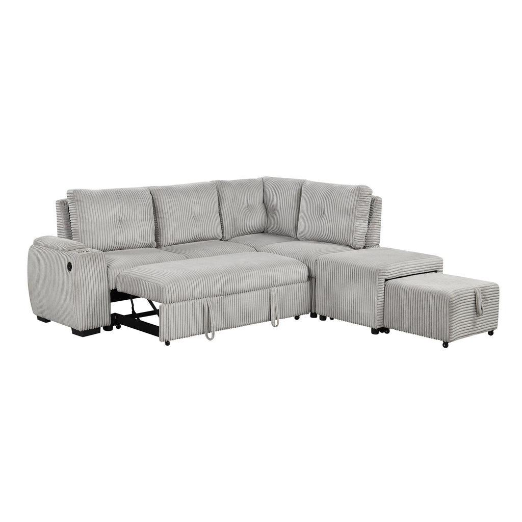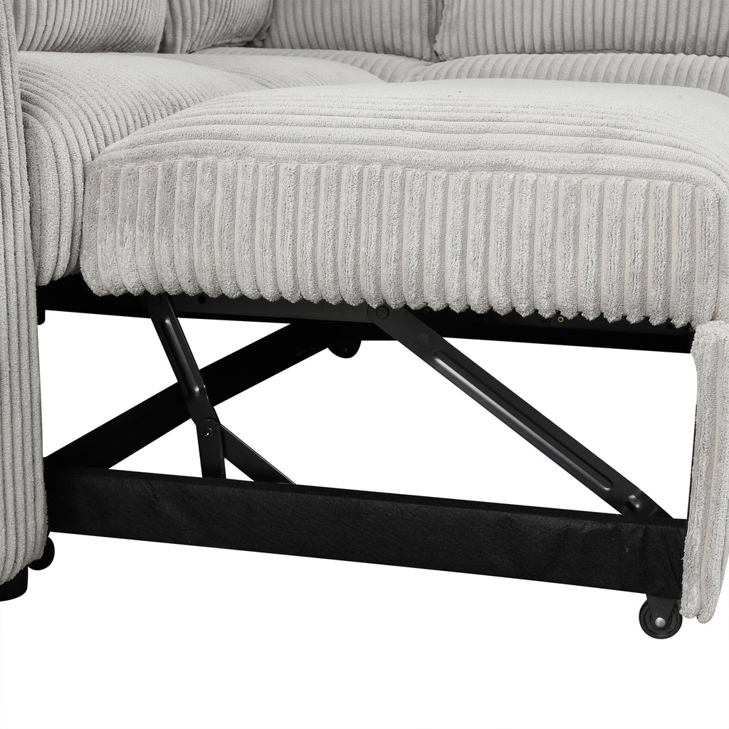 This versatile sofa bed combines comfort, functionality, and style to enhance any living space. Upholstered in high-quality corduroy fabric, it offers a soft, breathable, and skin-friendly seating experience, while the high-density foam cushions provide superior support and comfort. Designed with convenience in mind, it features a quick conversion mechanism that easily transforms the sofa into a spacious bed, perfect for accommodating guests. The sofa also includes a hidden storage compartment in the armrest and a large under-seat storage area, ideal for keeping your living area organized and clutter-free. For added convenience, two built-in USB ports allow you to charge devices without needing to search for an outlet, while a built-in cup holder ensures drinks and snacks are always within reach. The movable ottoman and stool provide flexible seating and additional storage options, all while maintaining a compact footprint. Whether you're lounging, hosting guests, or looking for extra storage, this sofa bed offers an all-in-one solution to maximize comfort and space in your home.