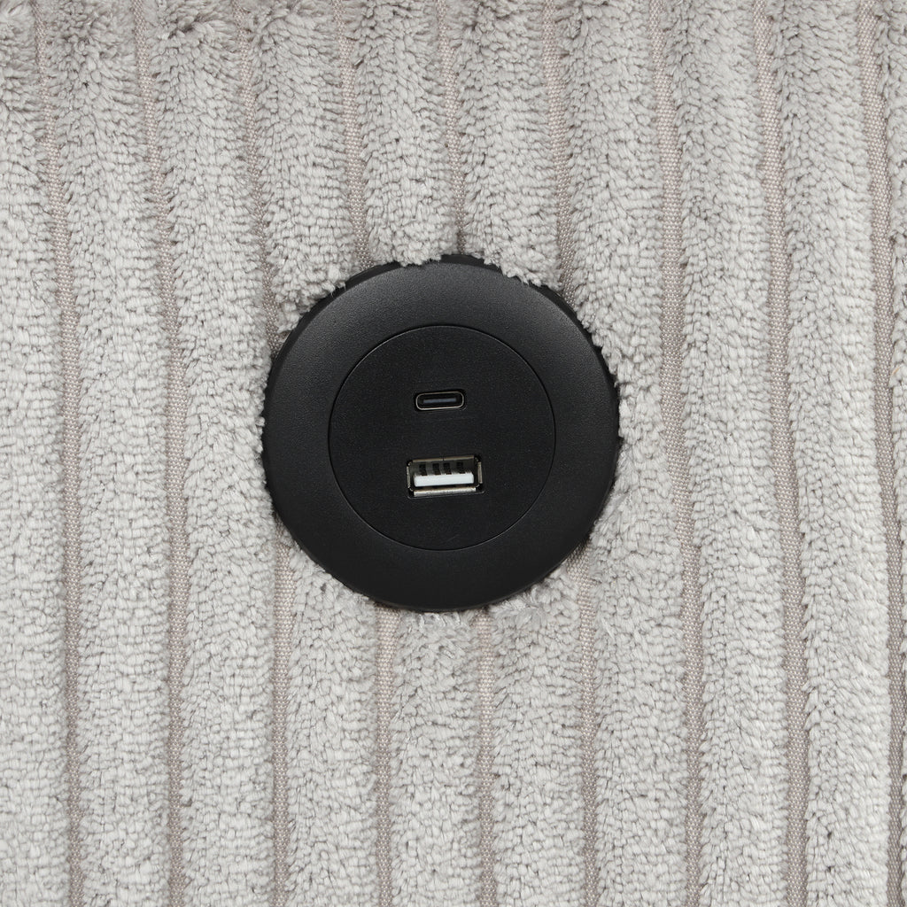The sofa bed is thoughtfully equipped with two handy USB ports located conveniently on the side, allowing you to charge your electronic devices with ease.
