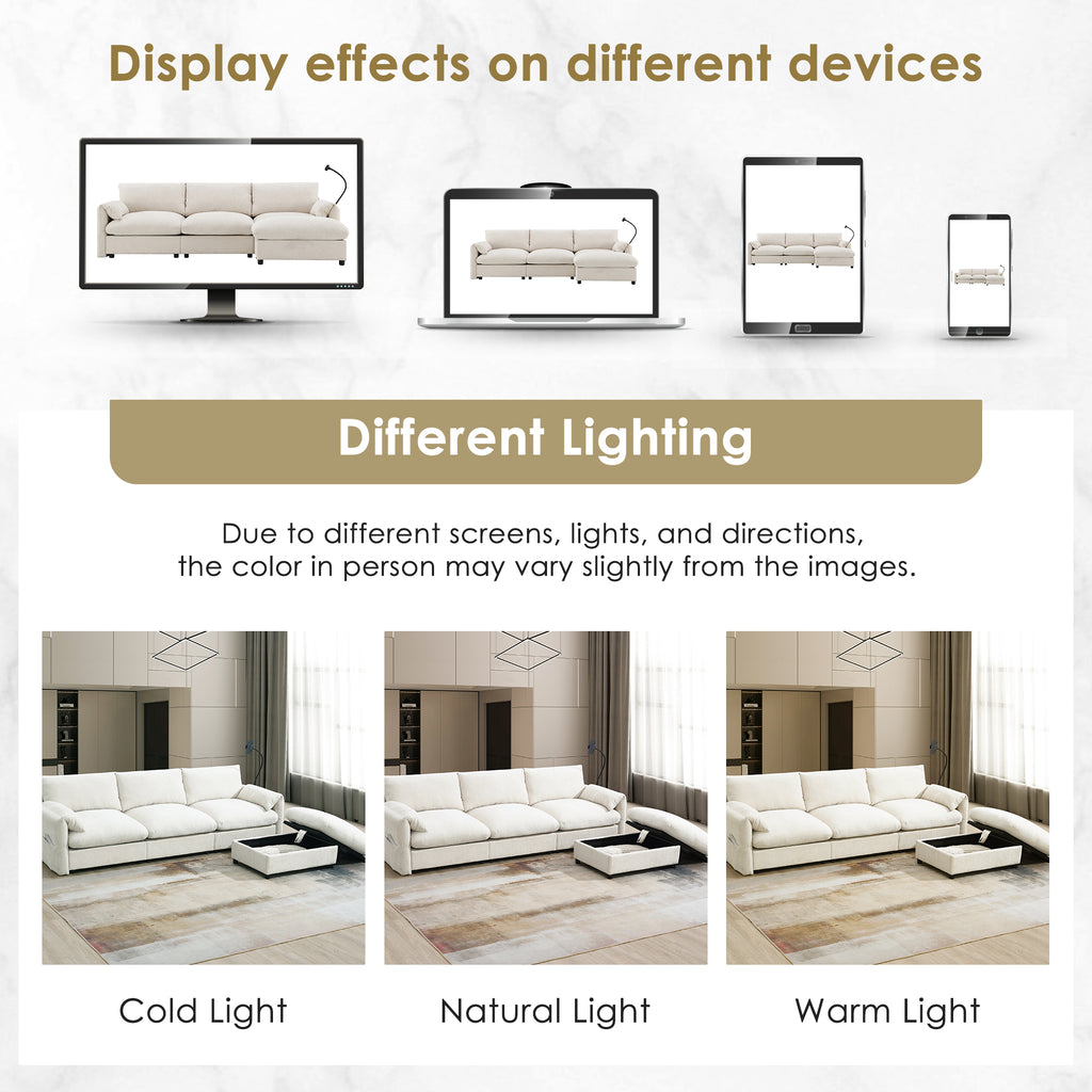 - Oversized Multifunctional Storage Ottoman: The sofa features an exceptionally large 32.5-inch ottoman that offers both comfort and practicality. This multifunctional piece can be used as a footrest or extra seating while also providing hidden storage space. It’s perfect for stowing away blankets, books, or other essentials, helping to keep your living area tidy and organized.