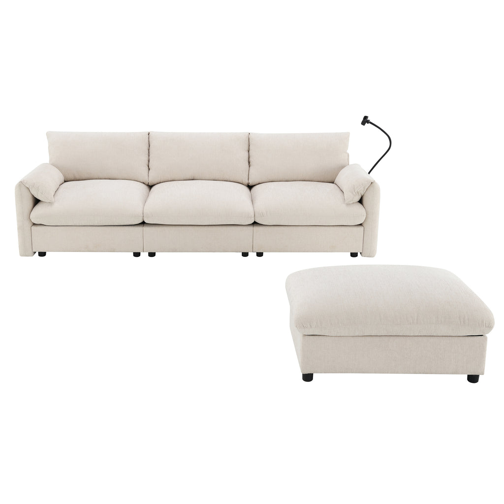 The sofa features an exceptionally large 32.5-inch ottoman that offers both comfort and practicality. This multifunctional piece can be used as a footrest or extra seating while also providing hidden storage space.
