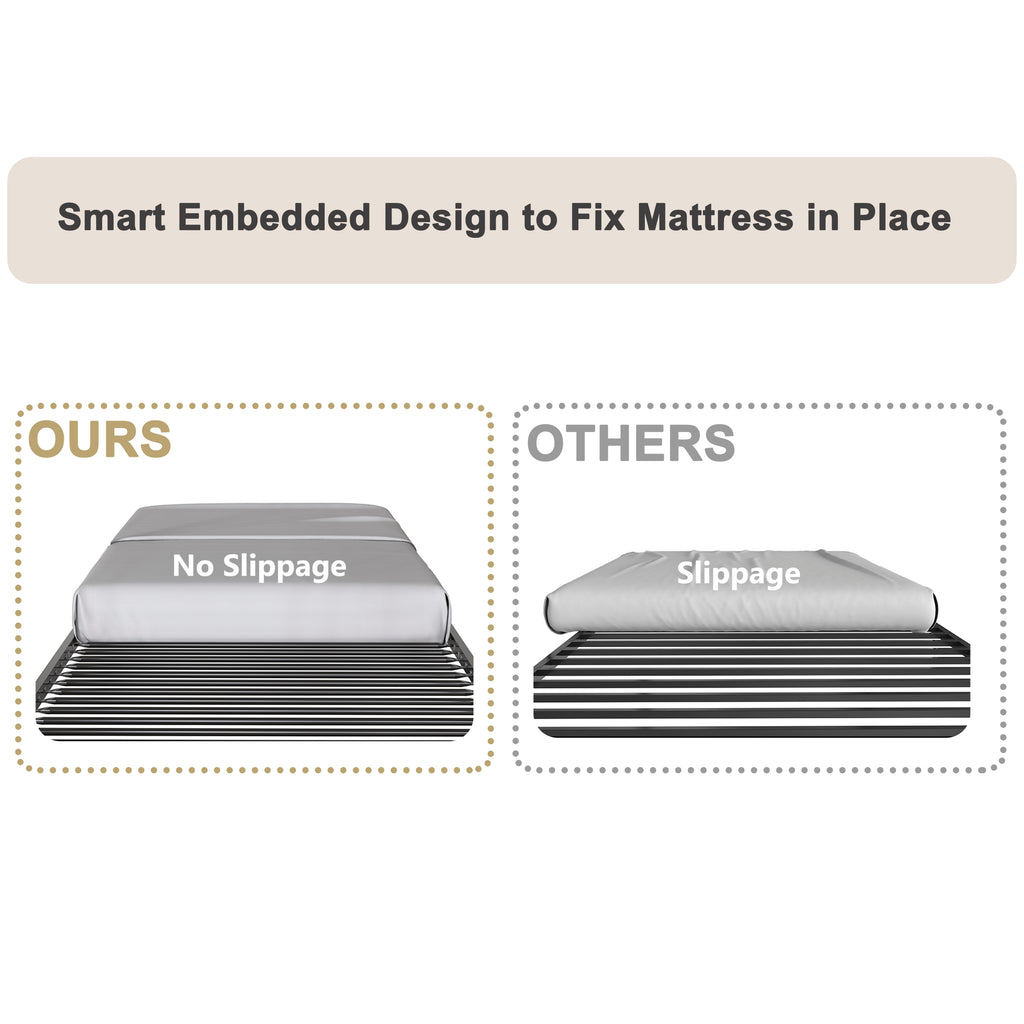 Maximize space with this full-over-full metal bunk bed, featuring a classic design and durable square tube frame for superior stability and safety. Enjoy enhanced security with high guardrails and a versatile, exchangeable ladder for customizable room layouts. No box spring is needed thanks to sturdy metal slats, ensuring a comfortable and quiet sleep experience.