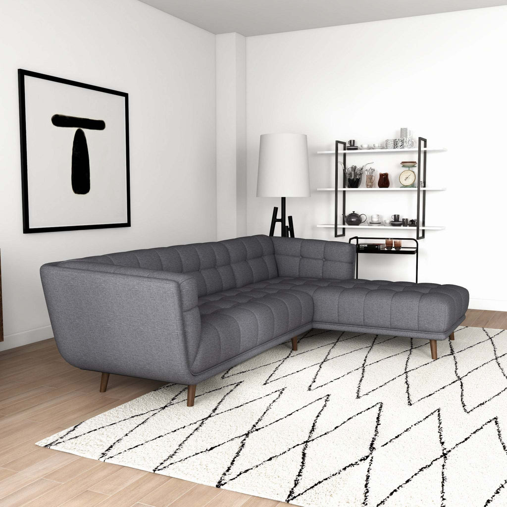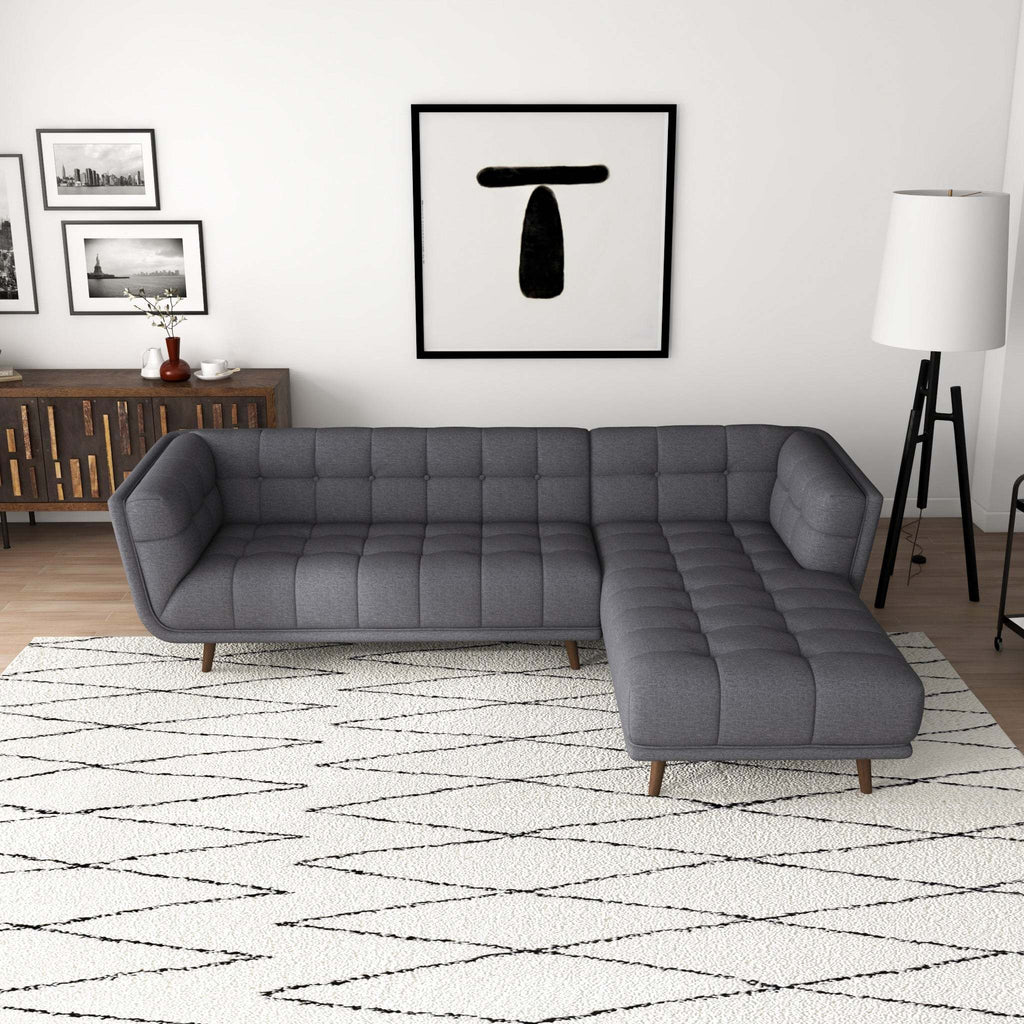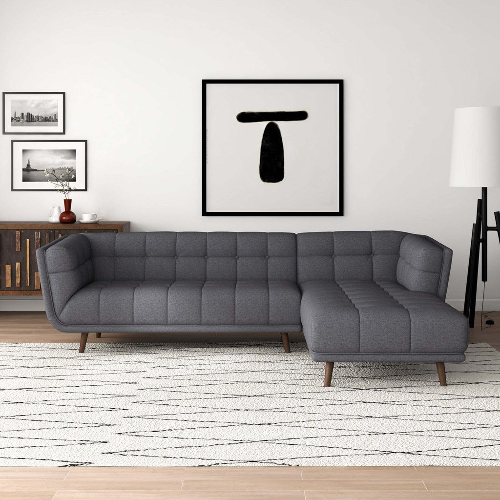 - This sofa-and-chaise sectional brings mid-century modern style to your living room with its clean lines and pillows.