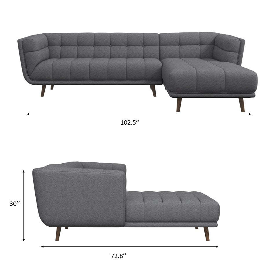 - A minimum door width of 36' from side to side is still required for left chase and right chase orientation. This five-star review grey fabric sectional sofa is not only high quality but also affordable and value for money.