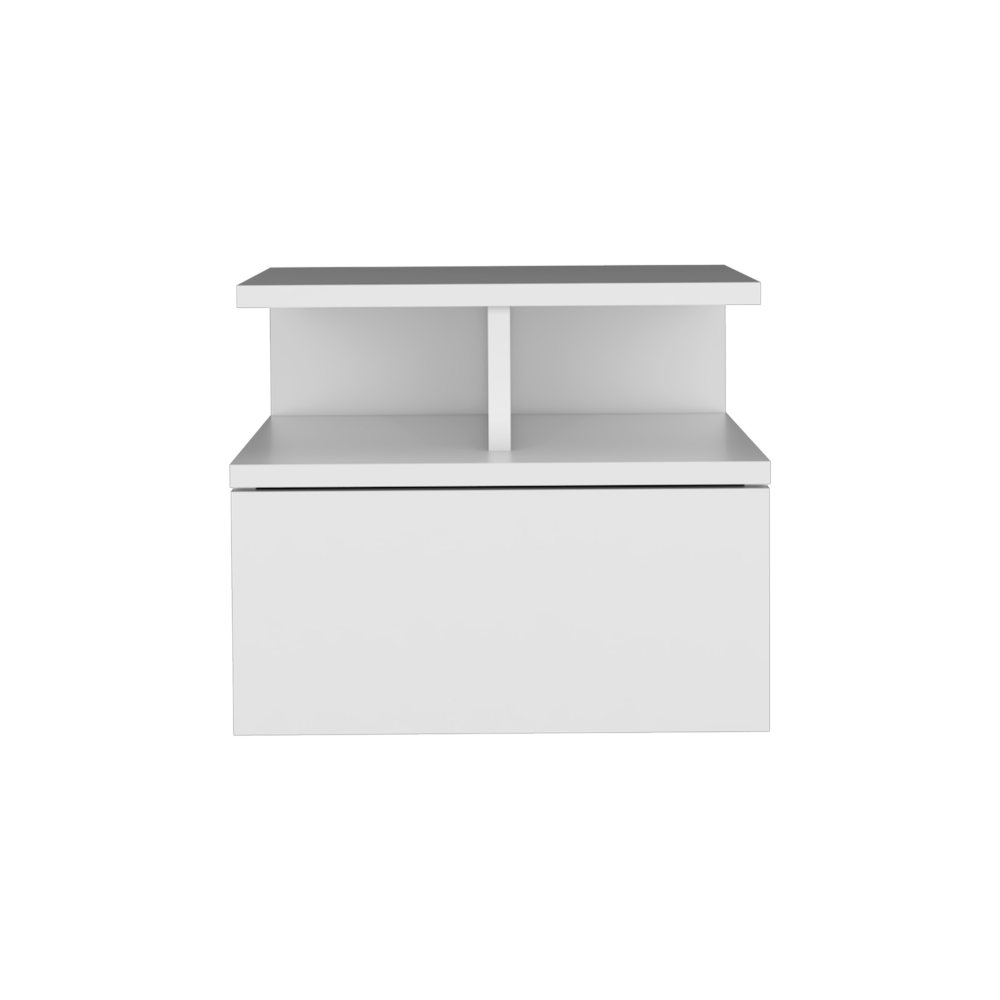 - Storage: Features one 10.4 Inch Wide x 5.5 Inch High Drawer, and divided middle shelf, providing the perfect storage for a compact nightstand in limited space rooms