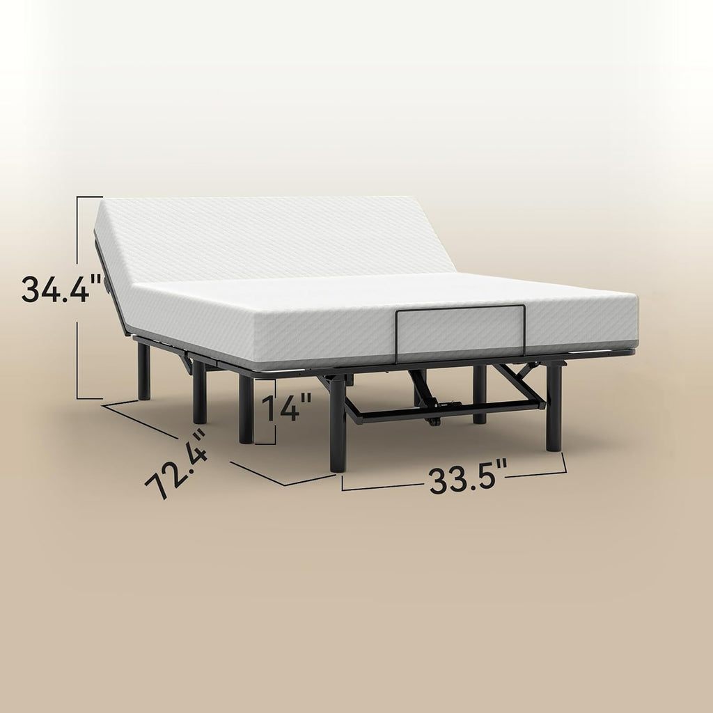 Experience ultimate sleep luxury with this black Queen-sized adjustable bed base, featuring a quiet OKIN motor for personalized comfort and a robust 750 lbs capacity. Its innovative 3-fold design ensures easy 5-minute setup and portability, making it perfect for any bedroom. Stay connected with convenient dual USB ports and effortlessly find your ideal position using the remote with memory keys, combining classic style with modern functionality.