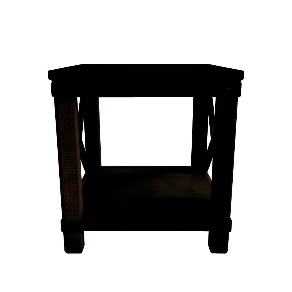 Crafted with solid pine wood treated to a weathered gray finish, this end table is rustic farmhouse living at its best. Crossbuck styling adds striking flair. Metal industrial brackets incorporate an industrial twist.