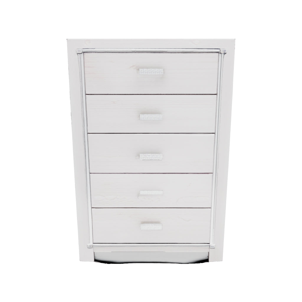 The epitome of fashion-forward design, this chest of drawers is a beautiful blend of style and luxury. Shiny chrome-tone accents, a pearlized finish and mosiac pulls bring a glam touch to the richly rustic appearance. Five smooth-gliding drawers provide plenty of storage space for your wardrobe needs.