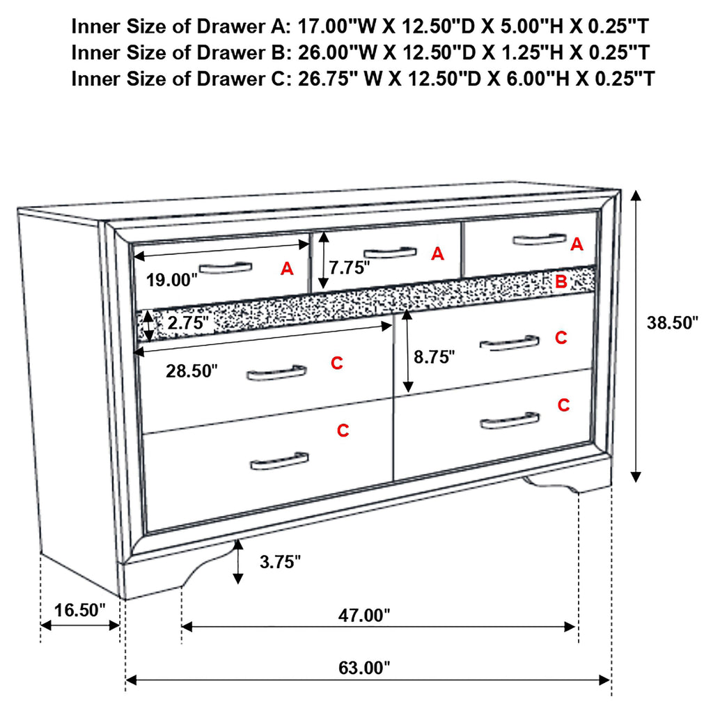 | Dresser dimensions | 38.75 inches high x 63 inches wide x 16.5 inches deep |