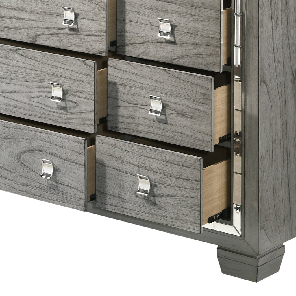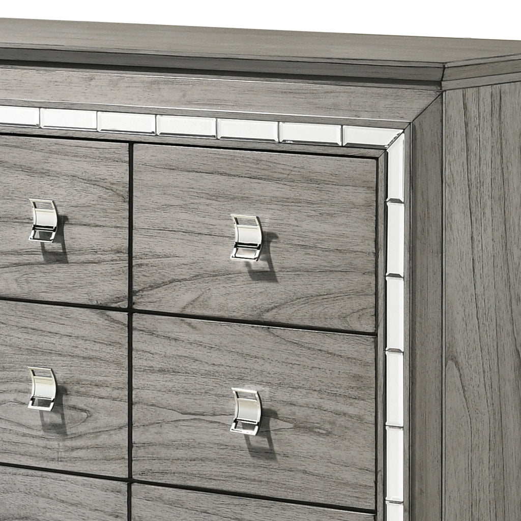 - The dresser is framed with smooth wood and accented by a mirrored front trim, creating a stunning visual contrast that enhances its sophisticated design.