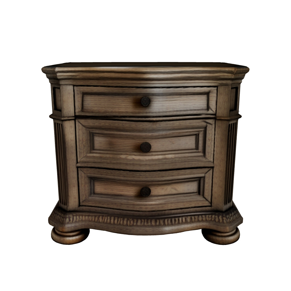Merging traditional elegance with contemporary comfort, this nightstand takes your bedroom retreat to the next level. Serpentine curves, ash swirl veneer inlays on the top and a glazed antiqued-look finish radiate timeless sophistication. Drawers are packed with ample bedside storage possibilities. A convenient 110V power supply and USB charging add a modern touch to this stunningly refined piece.